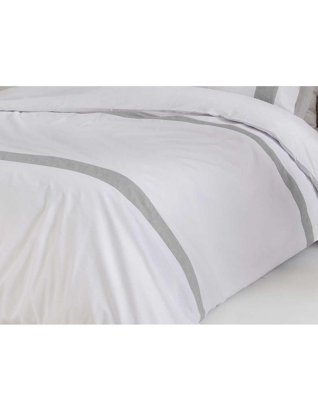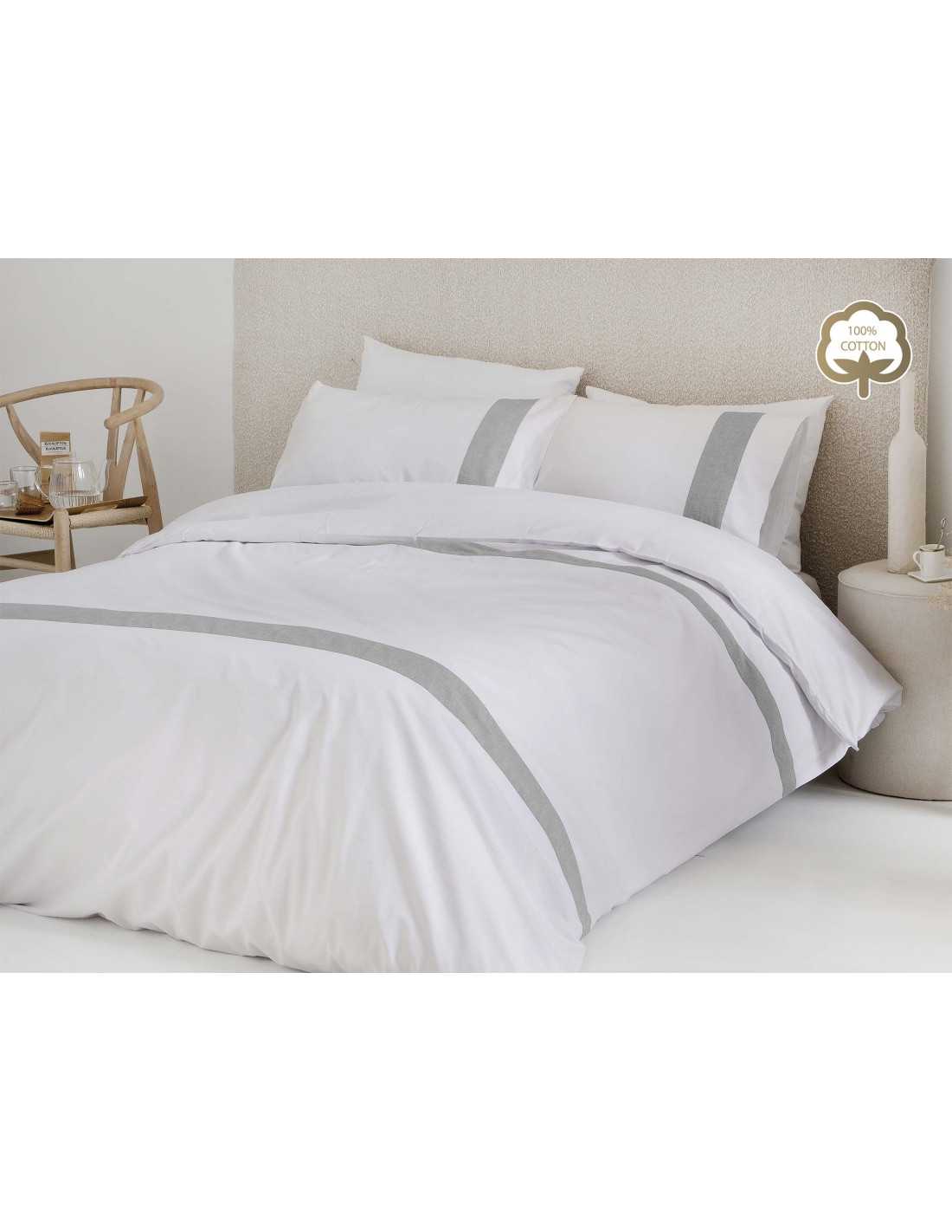 Funda nórdica 100% algodón Victoria en color blanco con diseño muy sencillo y elegante en color blanco con franjas de color gris.