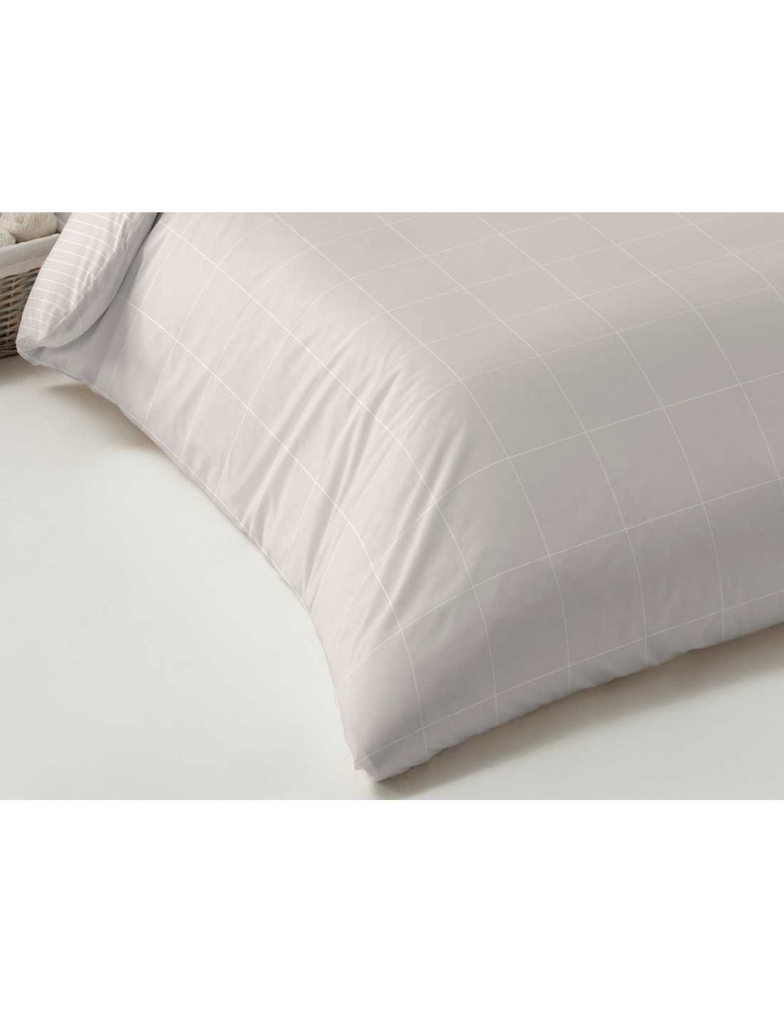 Juego de funda nórdica reversible de 2 piezas en tejido de franela 100% algodón con un diseño elegante de cuadros en color beige. Muy cálida y confortable.