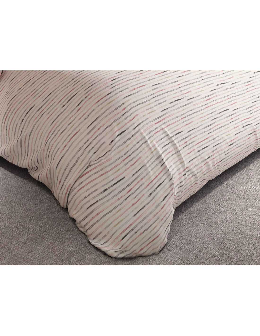 Juego de funda nórdica de 3 piezas con un atractivo diseño con trazos de colores con reverso, bajera y almohadones en color nude.