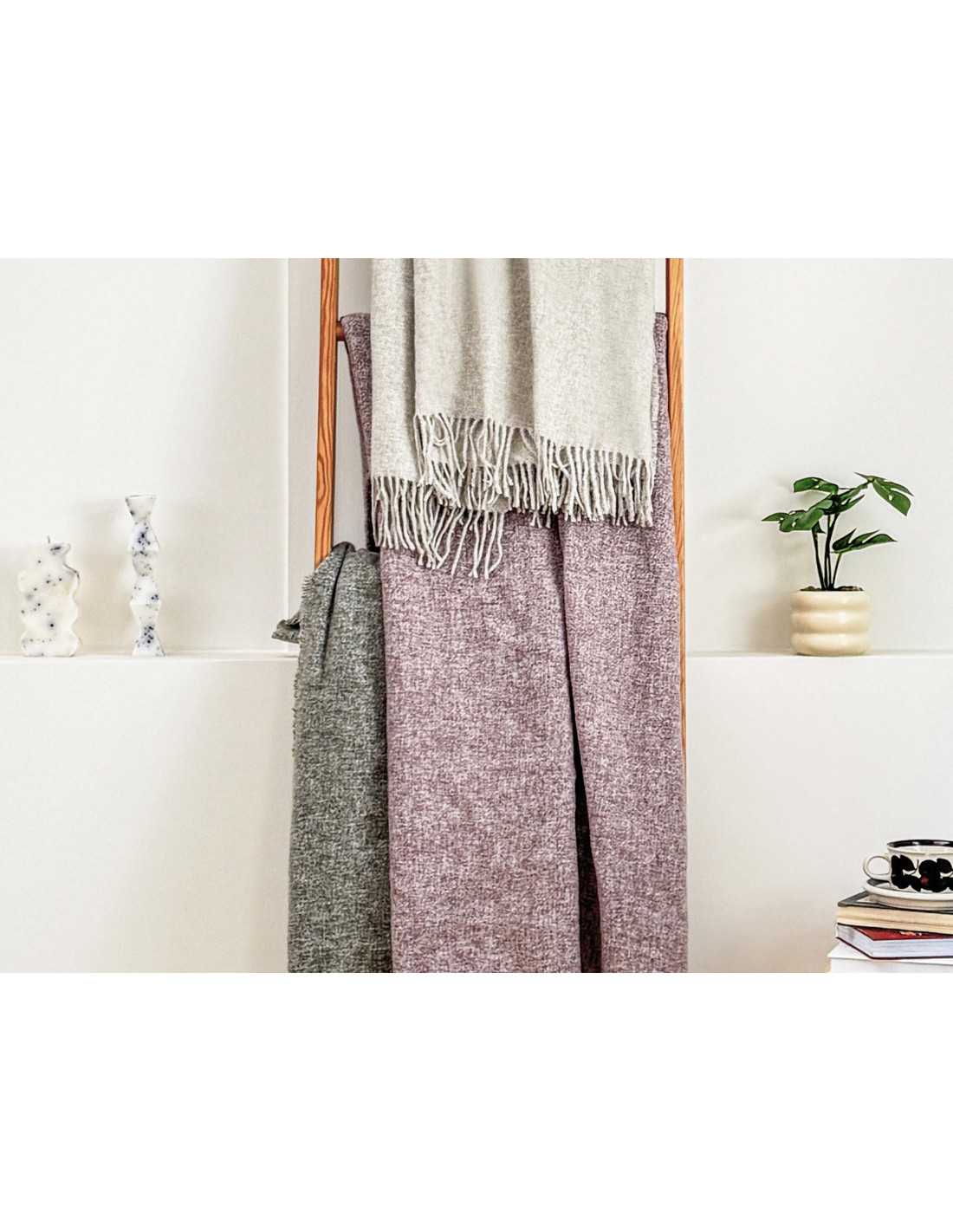 Manta plaid para usar en el sofá o como pie de cama terminada en flecos y disponible en tres colores y dos medidas diferentes.