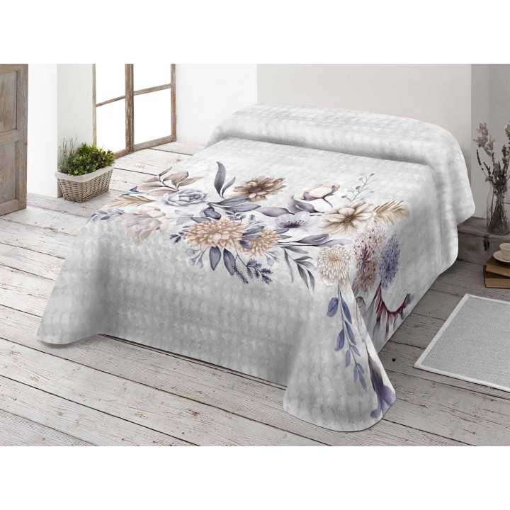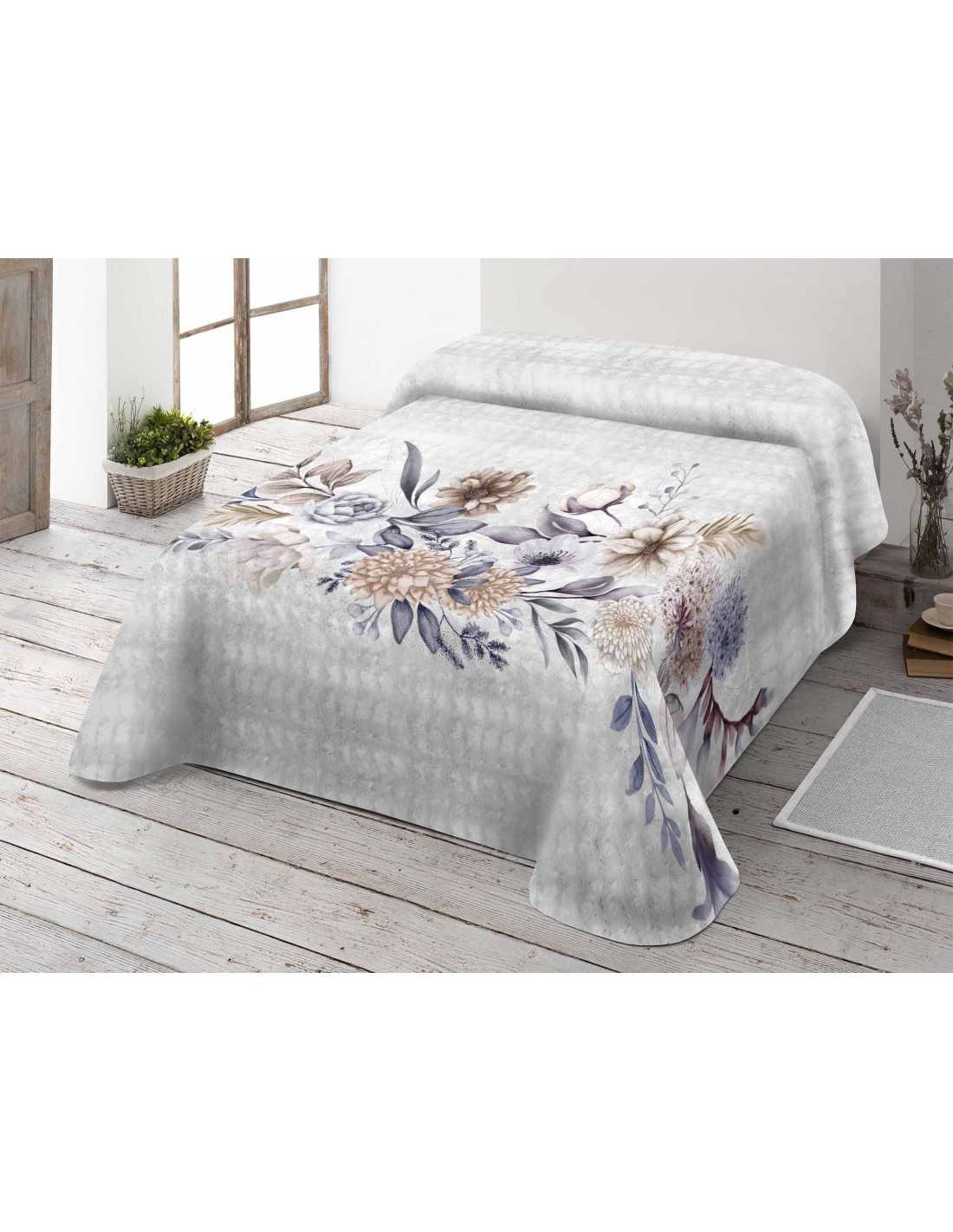 Cendra es una manta de terciopelo con un diseño floral con fondo gris. Prepárate para las noches frías del año con esta preciosa manta estampada de terciopelo. Puedes usarla debajo del edredón o colcha o también te quedará perfecta como edredón y crearás una decoración única en tu dormitorio. Mantas con diseños originales y muy modernos.