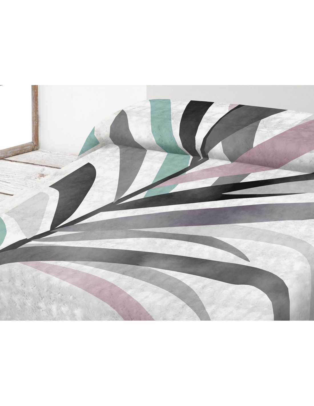Velora es una manta de terciopelo con un diseño abstracto en tonos grises con detalles verde y rosa. Prepárate para las noches frías del año con esta preciosa manta estampada de terciopelo. Puedes usarla debajo del edredón o colcha o también te quedará perfecta como edredón y crearás una decoración única en tu dormitorio. Mantas con diseños originales y muy modernos.