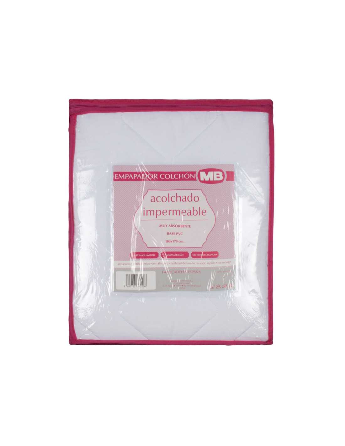 Empapador de colchón impermeable y de tejido acolchado. Muy absorbente y con base de pvc para evitar que la humedad traspase al colchón.