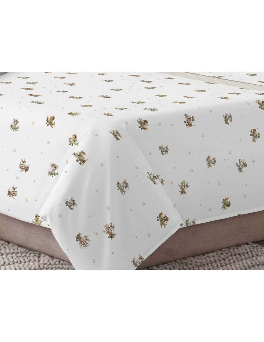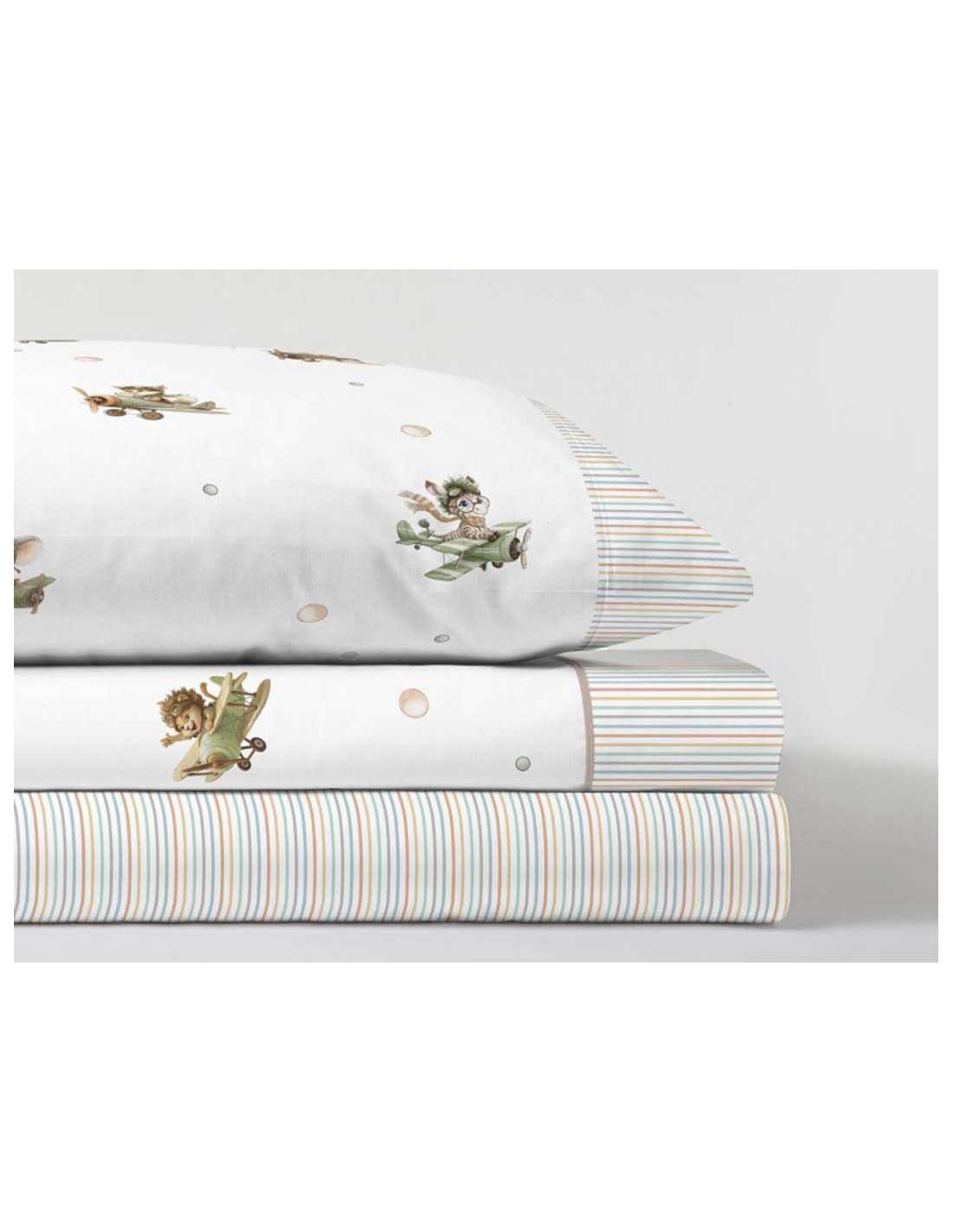 Juego de sábanas infantiles Dusty en color beige, con divertidas ilustraciones de animalitos en avionetas, ideal para los peques de casa.