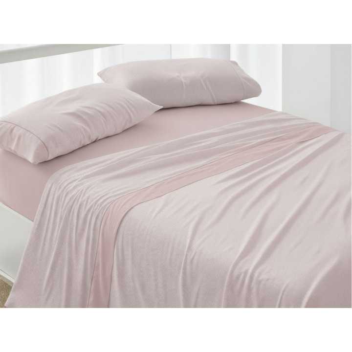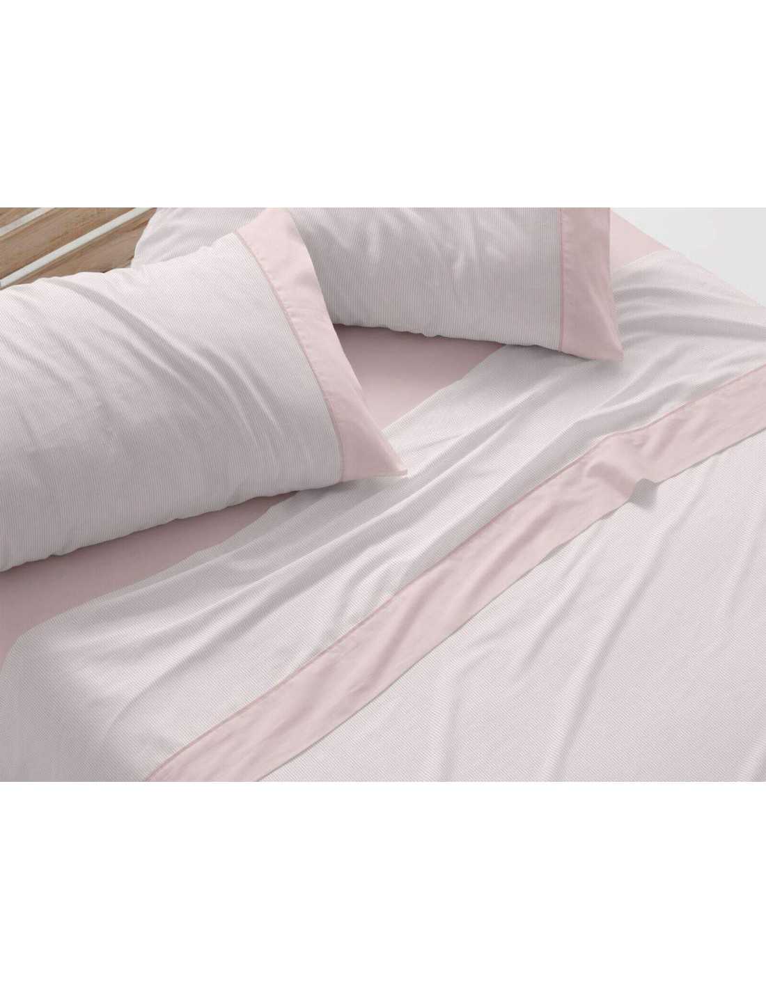 Juego de sábanas de la marca Burrito Blanco en color coral con un diseño de rayas finas, para dotar de elegancia a tu dormitorio.