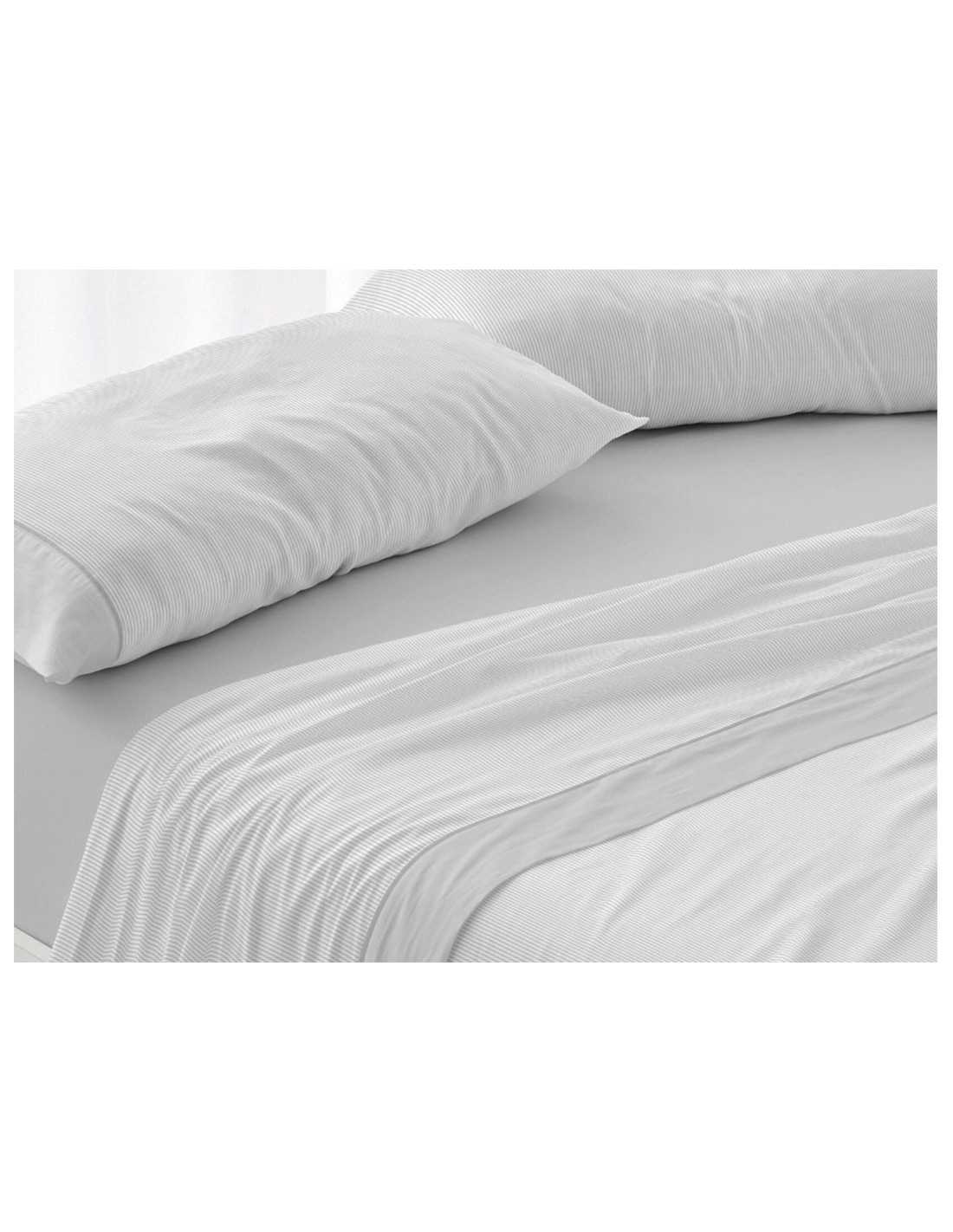 Juego de sábanas de la marca Burrito Blanco en color gris con un diseño de rayas finas, para dotar de elegancia a tu dormitorio.