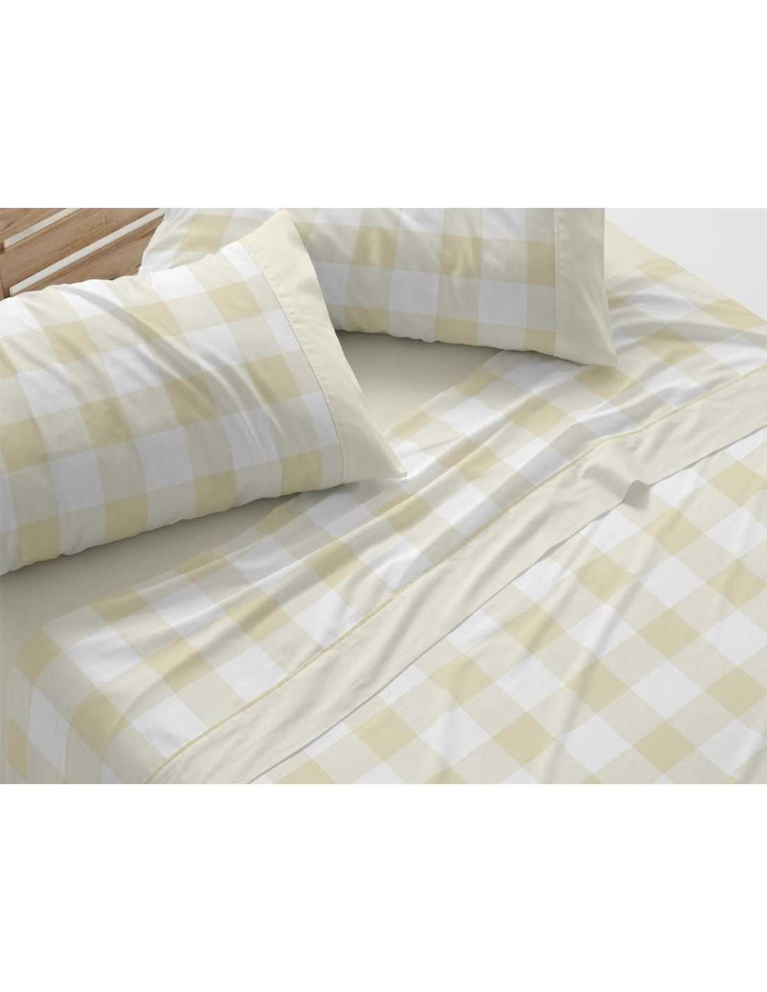 Juego de sábanas de Burrito Blanco modelo Nadir en color mostaza con sencillo y elegante con cuadros. Un juego de sábanas con encimera, bajera y almohadón.