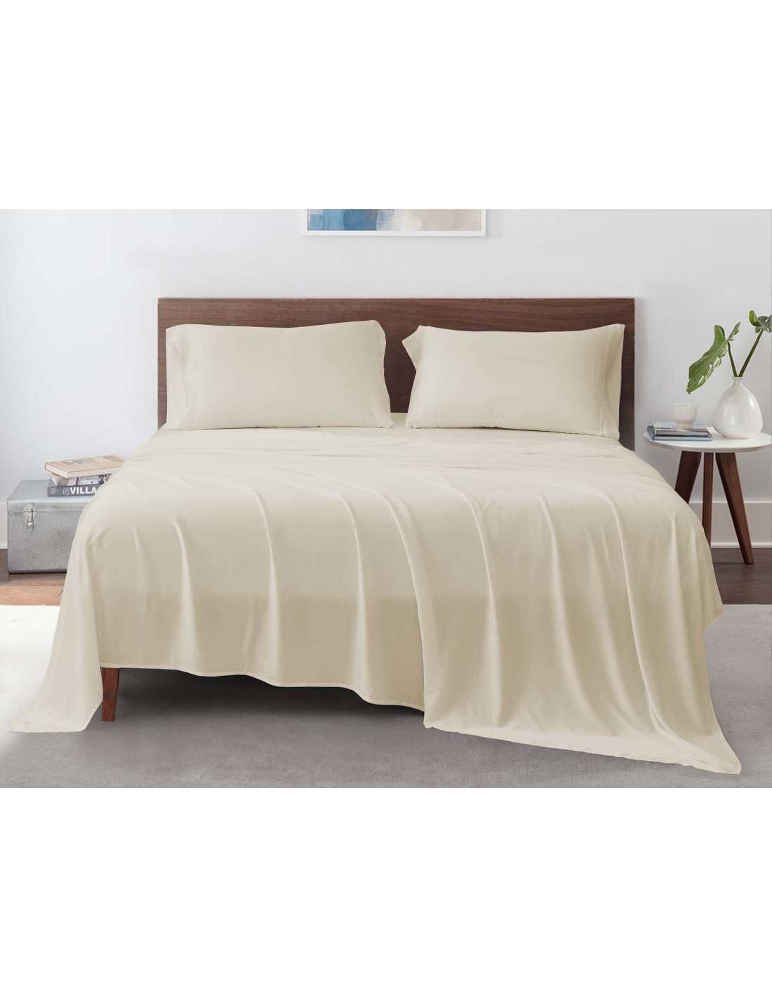 Juego de sábanas de Percal 240 hilos de bambú 100% orgánico en color beige. Tejido hipoalergénico y termorregulador.