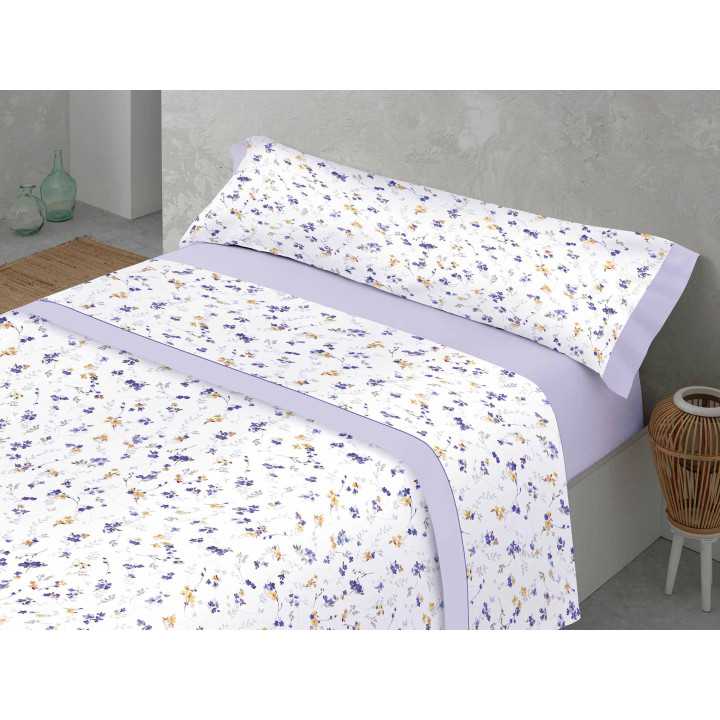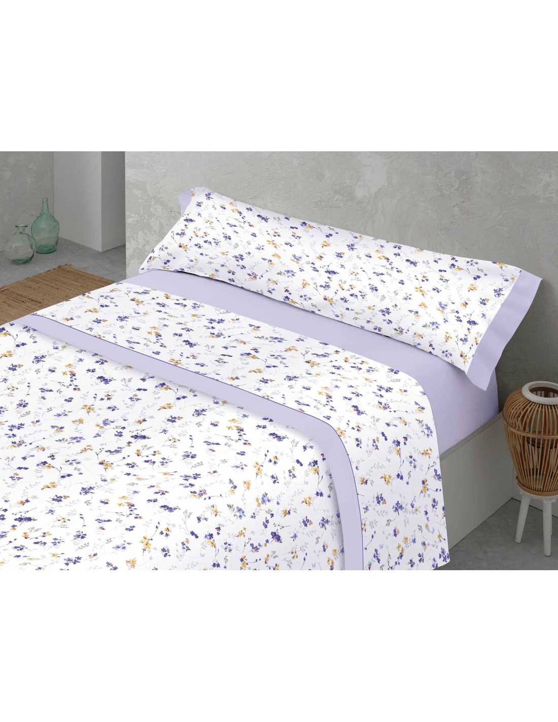 Rania es un juego de sábanas con un precioso diseño floral con la bajera lisa en color azul. Juego de sábanas con mucho estilo para decorar tu cama y a un precio fantástico.