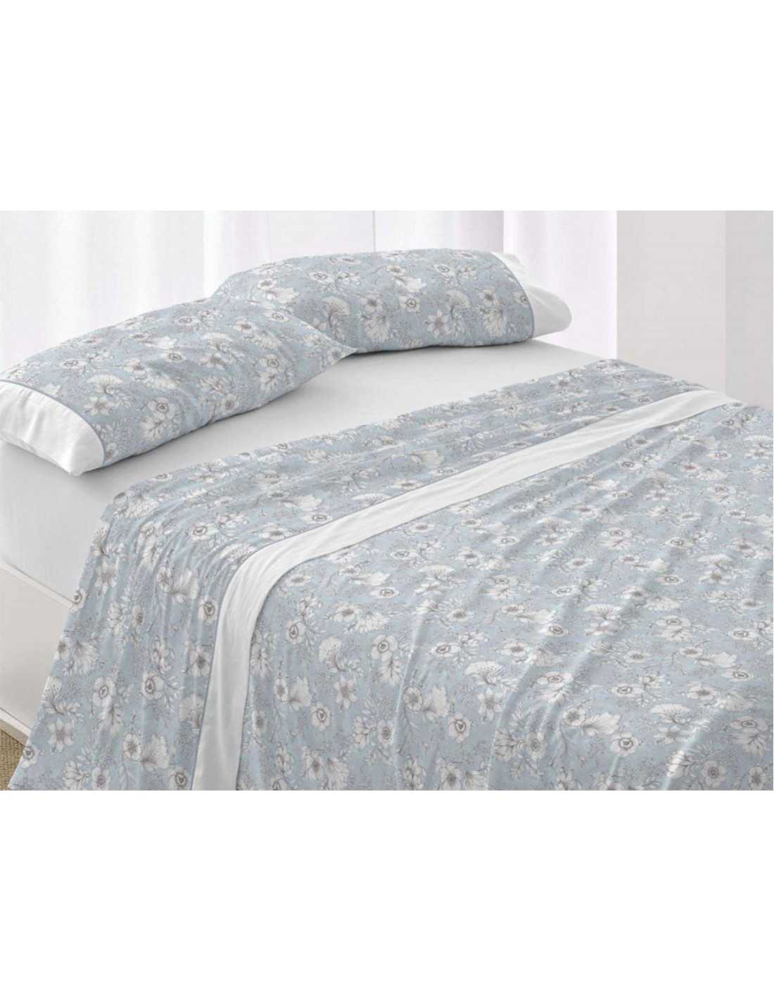Juego de sábanas 100% algodón Atmos de Burrito Blanco en color agua con diseño floral estilo toile de Jouy, ideal para aportar clase a tu dormitorio.