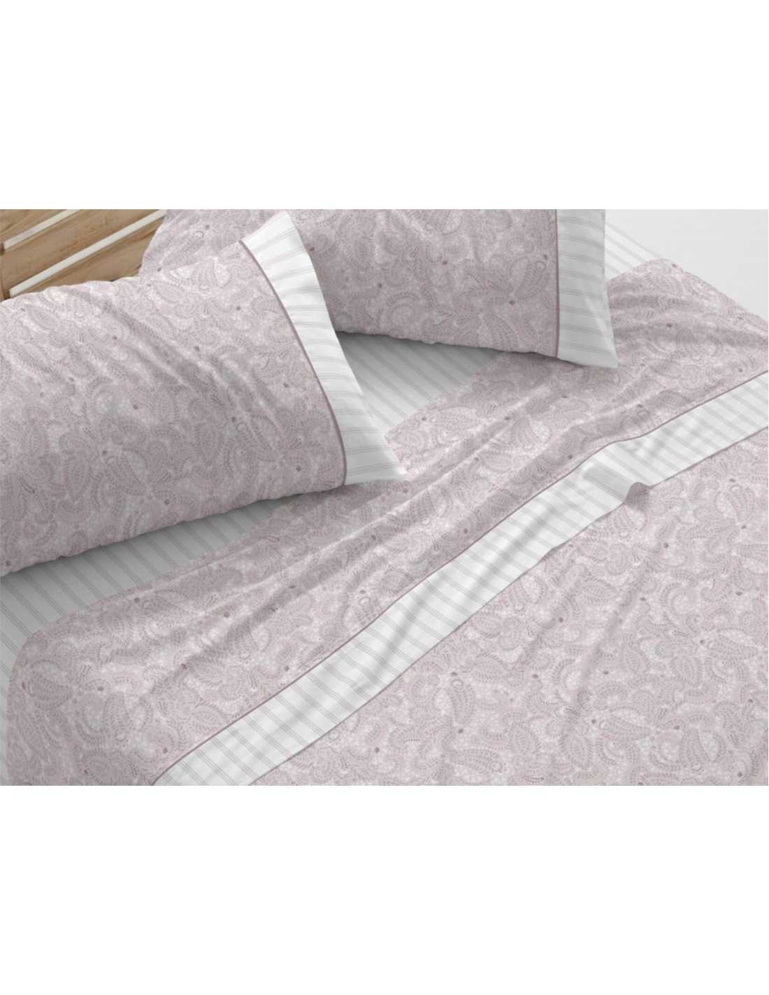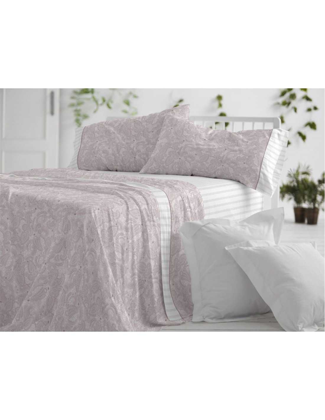 Juego de sábanas 100% algodón Céfiro de Burrito Blanco en color nude con diseño de clásico Paisley, dotando al dormitorio de una elegancia superior.