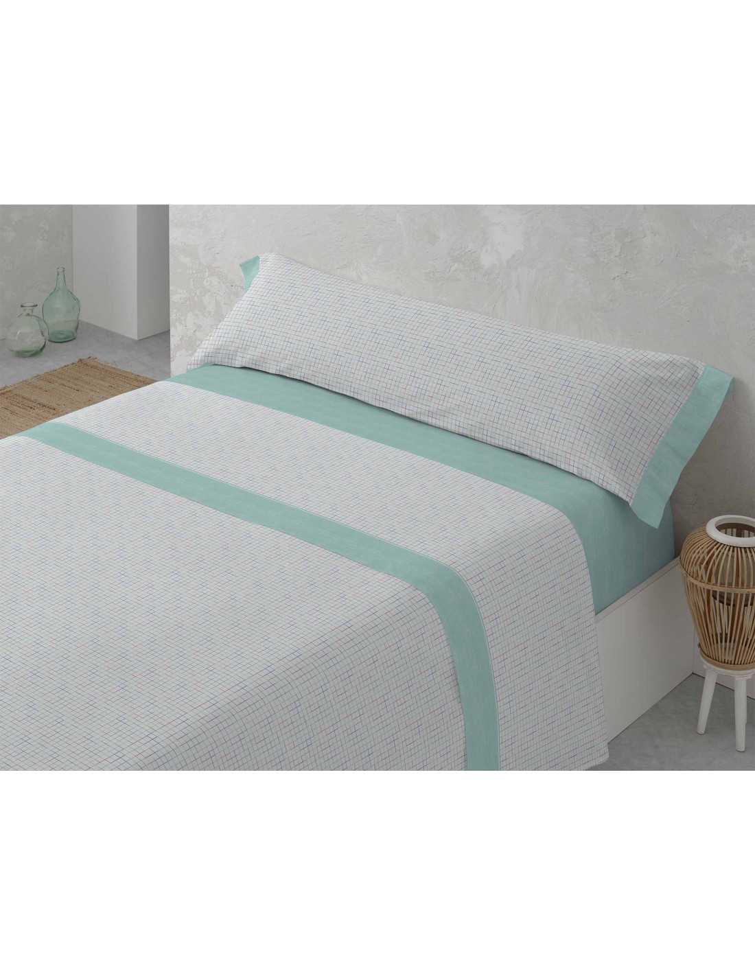 El modelo Sabela es un juego de sábanas de franela que tiene un diseño de finos cuadros multicolor con bajera y detalles en color verde. Su tejido con perchado a doble cara extra suave posee un gran poder calorífico. Calidad 100% algodón, fibra natural transpirable. Ahorro energético.