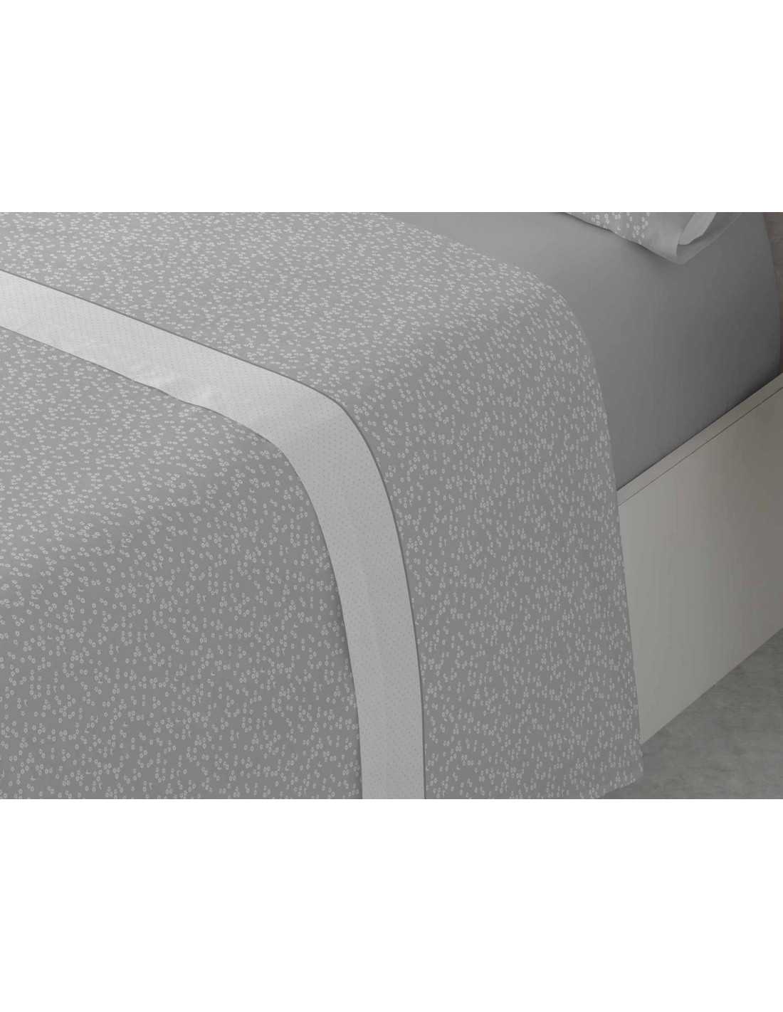 El modelo Triana es un juego de sábanas de franela que tiene un estampado de pequeñas florecillas en color gris. Su tejido con perchado a doble cara extra suave posee un gran poder calorífico. Calidad 100% algodón, fibra natural transpirable. Ahorro energético.