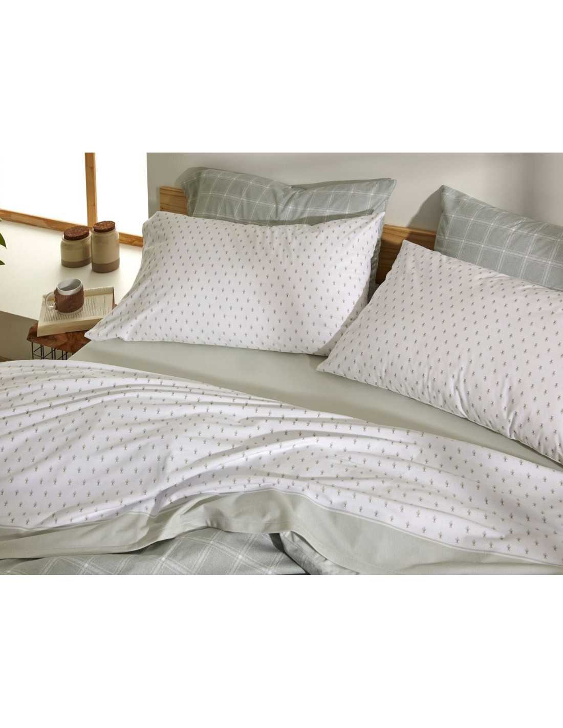 Liora es un juego de sábanas de VELVELINA que es un tejido de última innovación de Burrito Blanco en ropa de cama de invierno con diseño con pequeñas flores con bajera y detalles en color verde. La velvelina es un tejido de pelo corto, tupido y extremadamente suave y cálido.