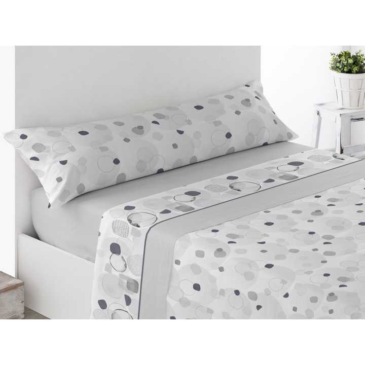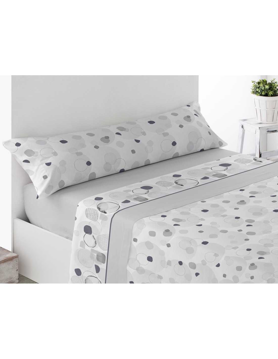 Azuaga es un juego de sábanas térmicas muy cálidas, ligeras y suaves de 180 gramos. Cuenta con un llamativo diseño con círculos en tonos grises. Confeccionado en 100% poliéster. Gana la guerra al frío con las sábanas más calentitas.