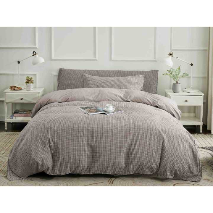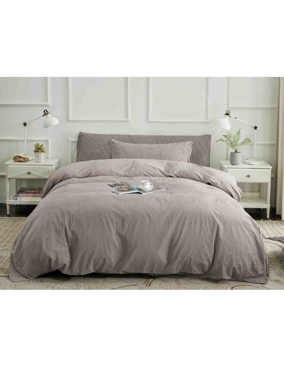 La funda nórdica Vidal está fabricada con algodón 100% orgánico por lo que es respetuosa con la piel y con el medio ambiente. Es una funda nórdica de calidad superior y tiene un diseño reversible con una cara de cuadros pequeños y por la otra líneas finas.