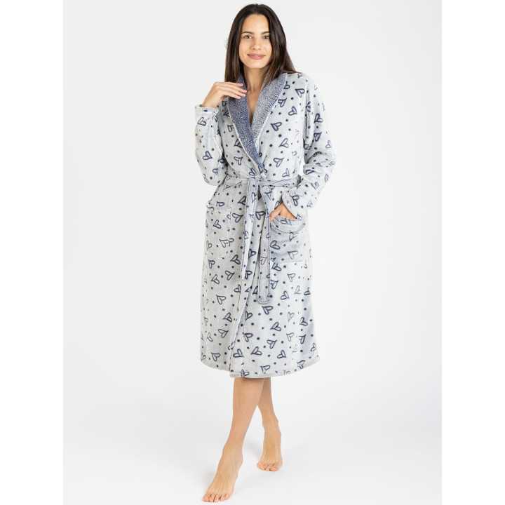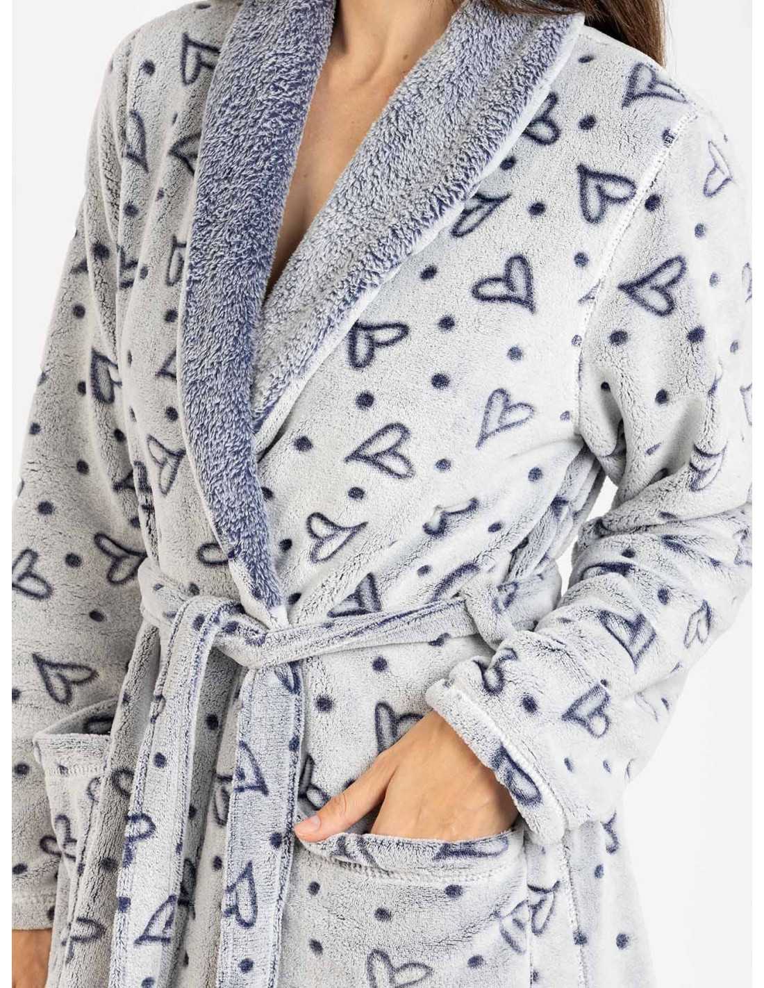 La bata reversible Tove está confeccionada en tejido imitación del muflón, de gran calidez ideal para el invierno. Tiene un precioso diseño con corazones con cinturón y bolsillos. Disfruta de tu ocio y tu descanso en tu hogar con nuestros pijamas.