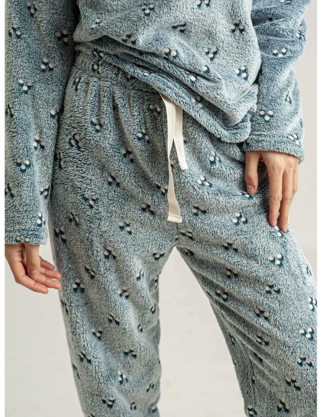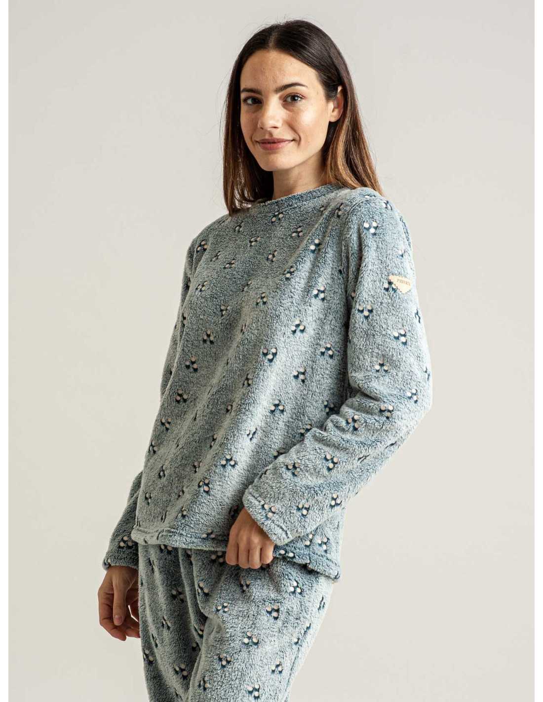 Pijama de tejido Coralina, muy cálido y de tacto sedoso. Una prenda ideal para disfrutar de tu hogar, y descansar con una cálida sensación.