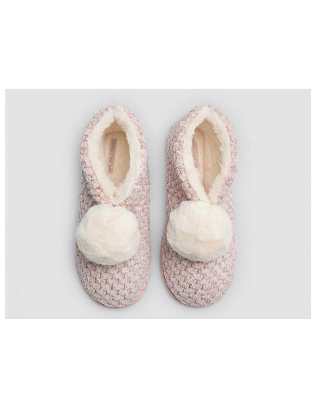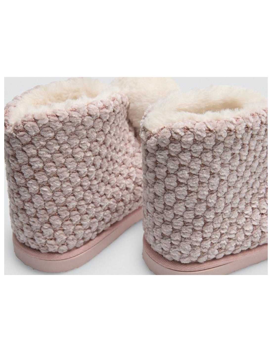 Zapatillas bota de casa para mujer en un tejido texturizado tipo burbuja, mientras que el interior está forrado con un material mullido y esponjoso. Comodidad en tus pies para disfrutar de tu hogar.