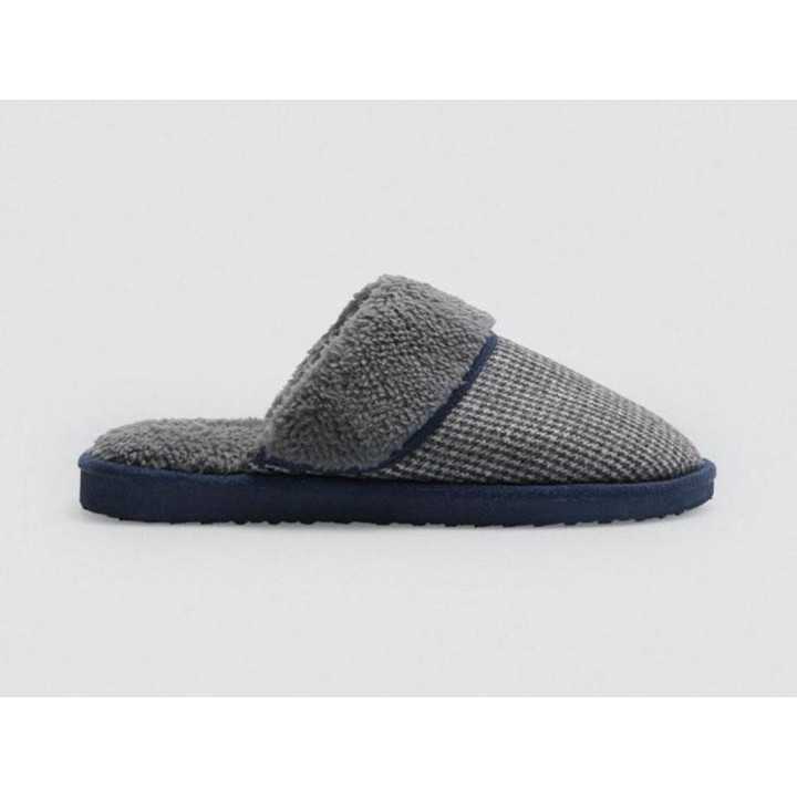 Zapatillas elegantes de casa para hombre con estampado de fina pata de gallo con interior de borreguito. Comodidad en tus pies para disfrutar de tu hogar.