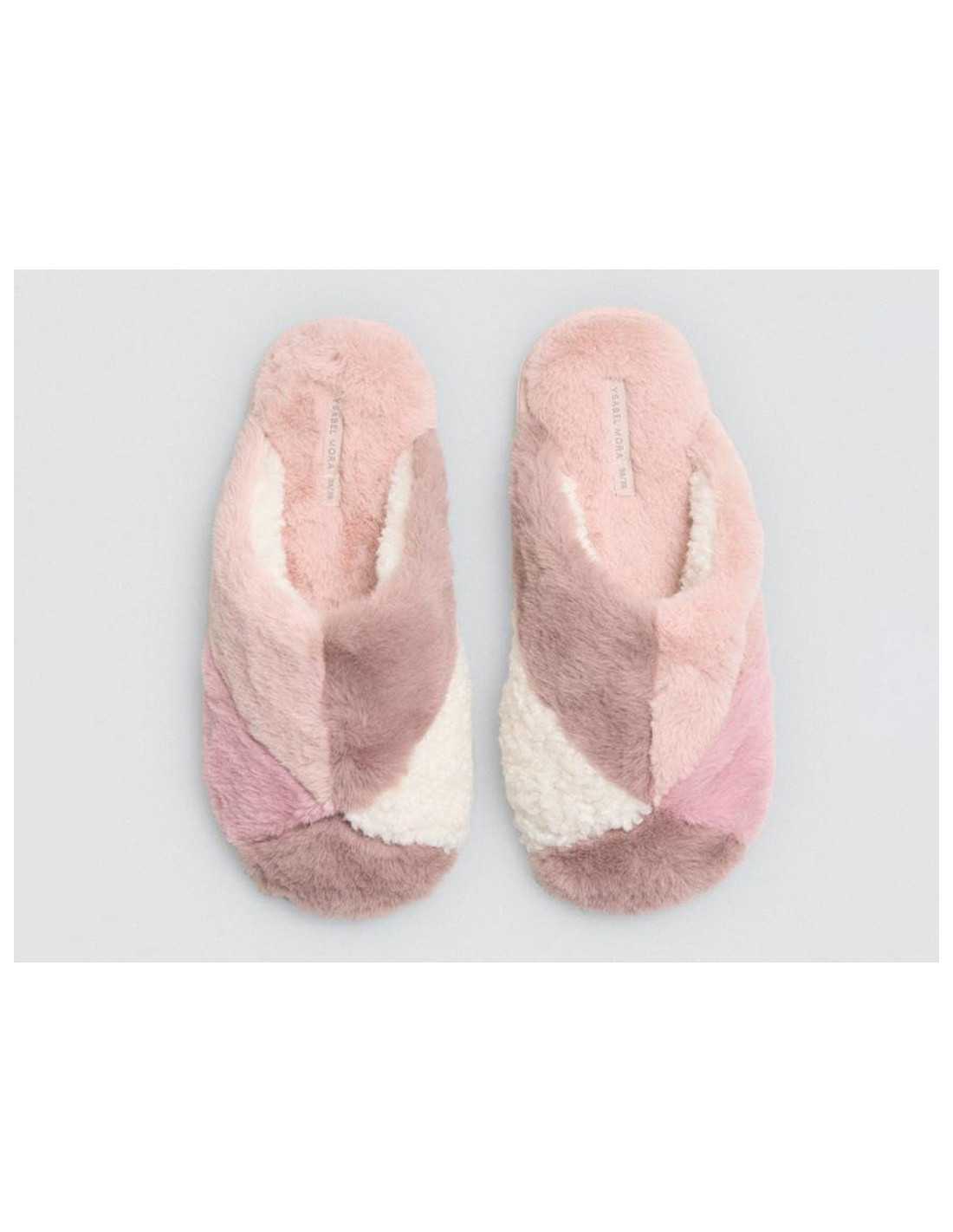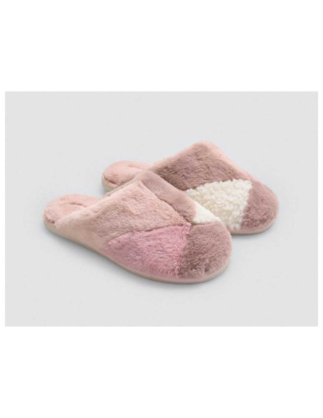 Zapatillas de casa Zentto para mujer, en pelo con diseño geométrico en varios colores. Su interior es muy suave y blando para lograr una gran comodidad.