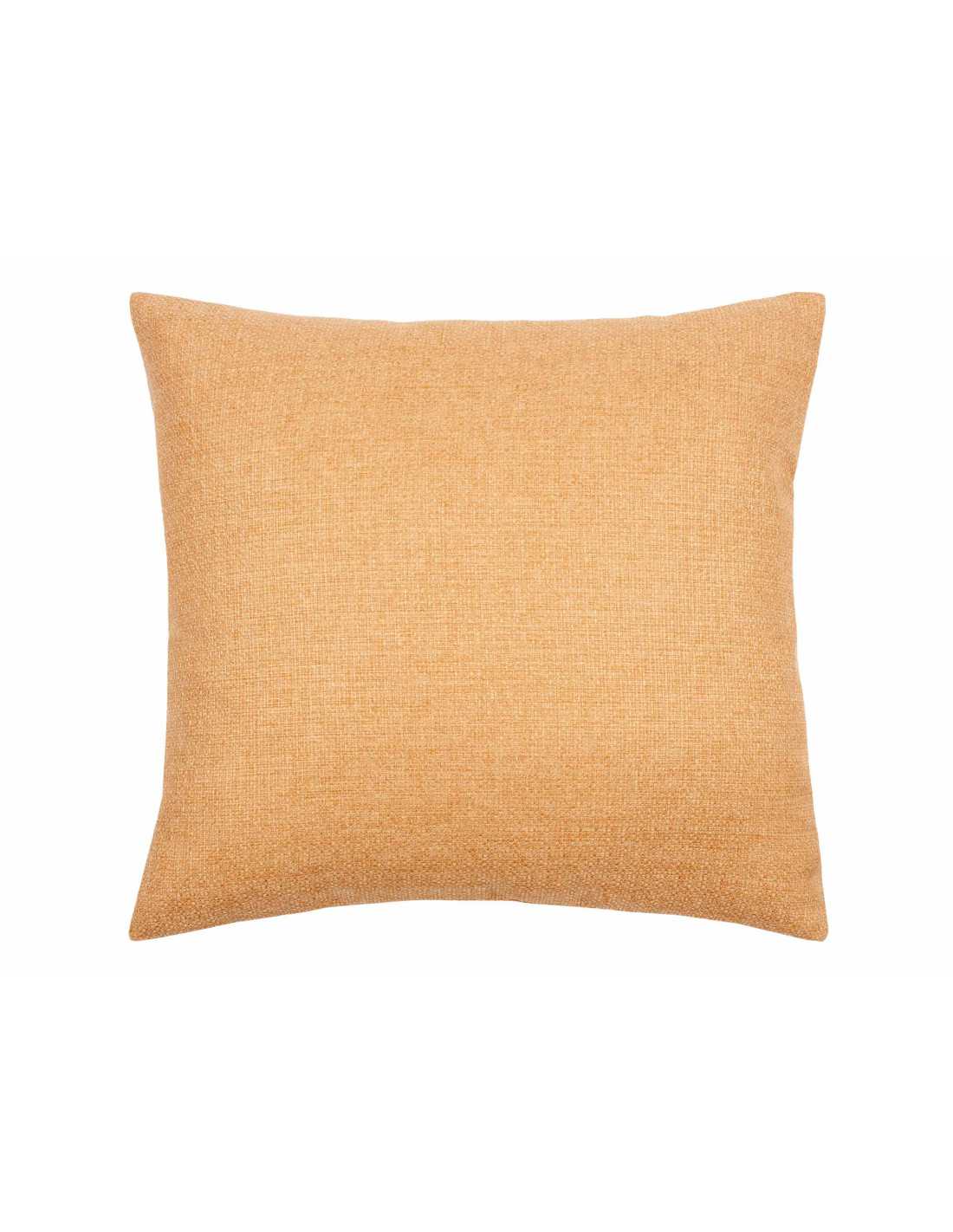 Cojín decorativo en color oro liso con tejido con ligero relieve, ideal para completar la decoración de cualquier rincón del hogar.