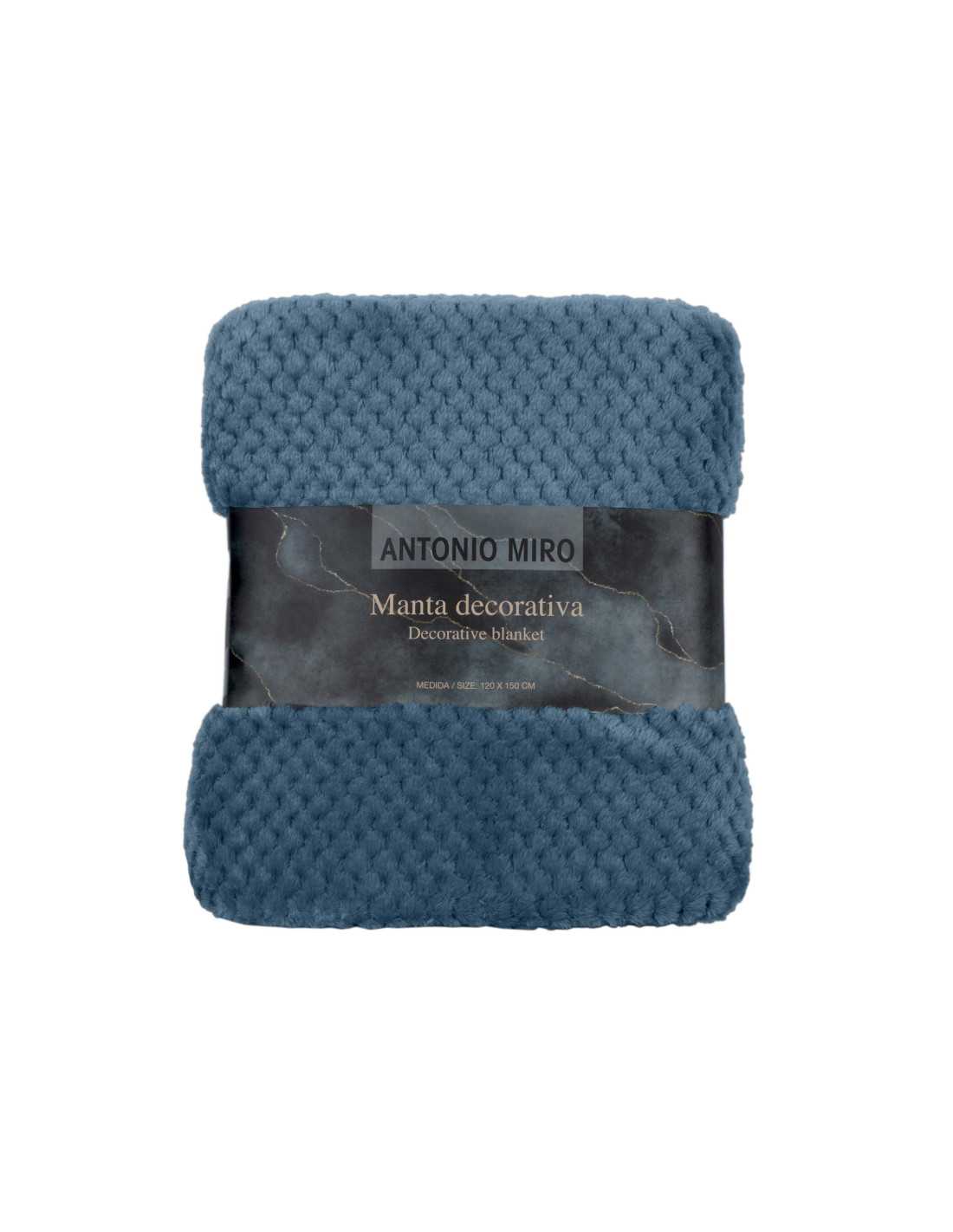Plaid decorativo Pop Corn de Antonio Miro en color petróleo con un relieve de rayas cruzadas. Indicado para decorar o como manta auxiliar.