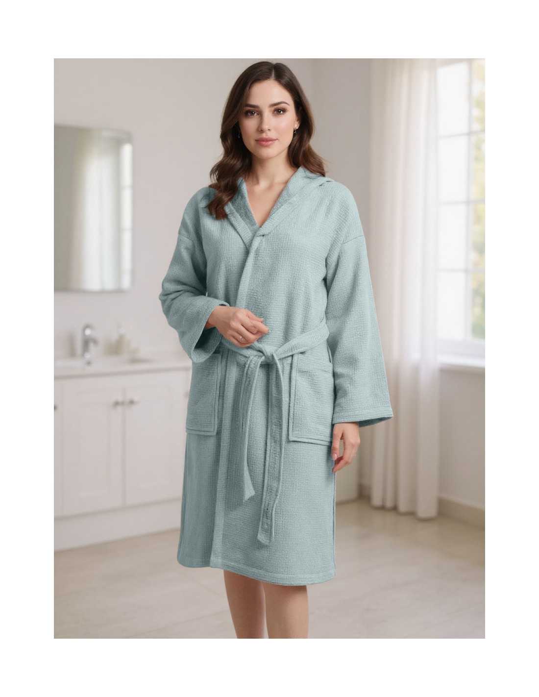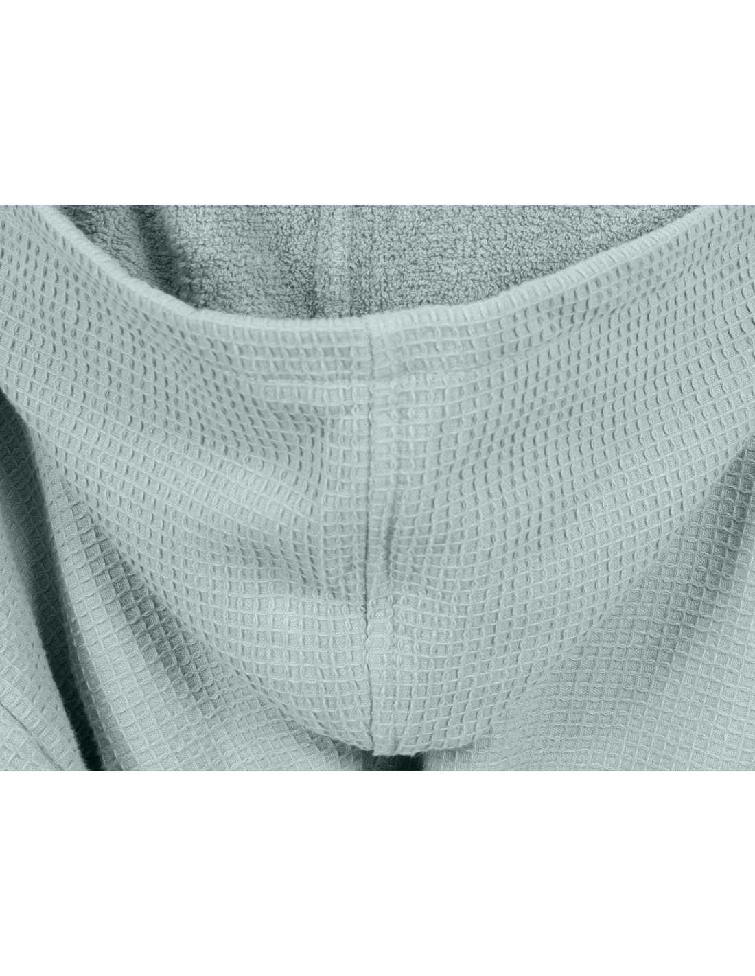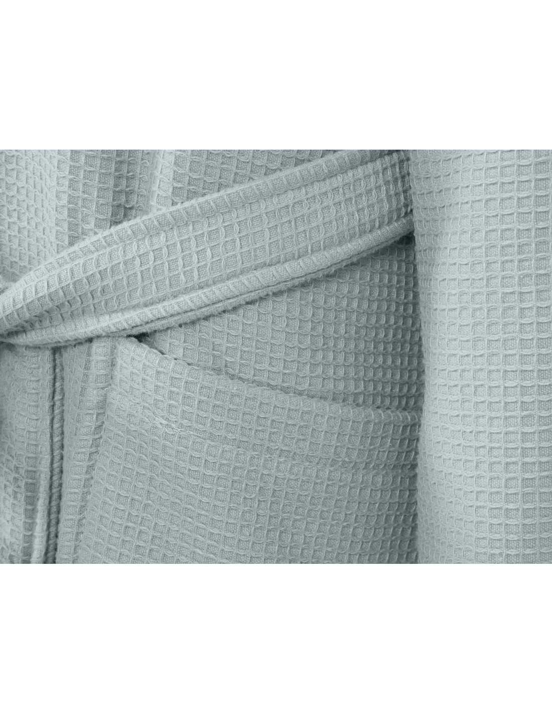 O robe de banho Maya na cor água é um modelo de alta qualidade, com interior em turco 100% algodão e exterior em tecido favo de mel de grande suavidade.