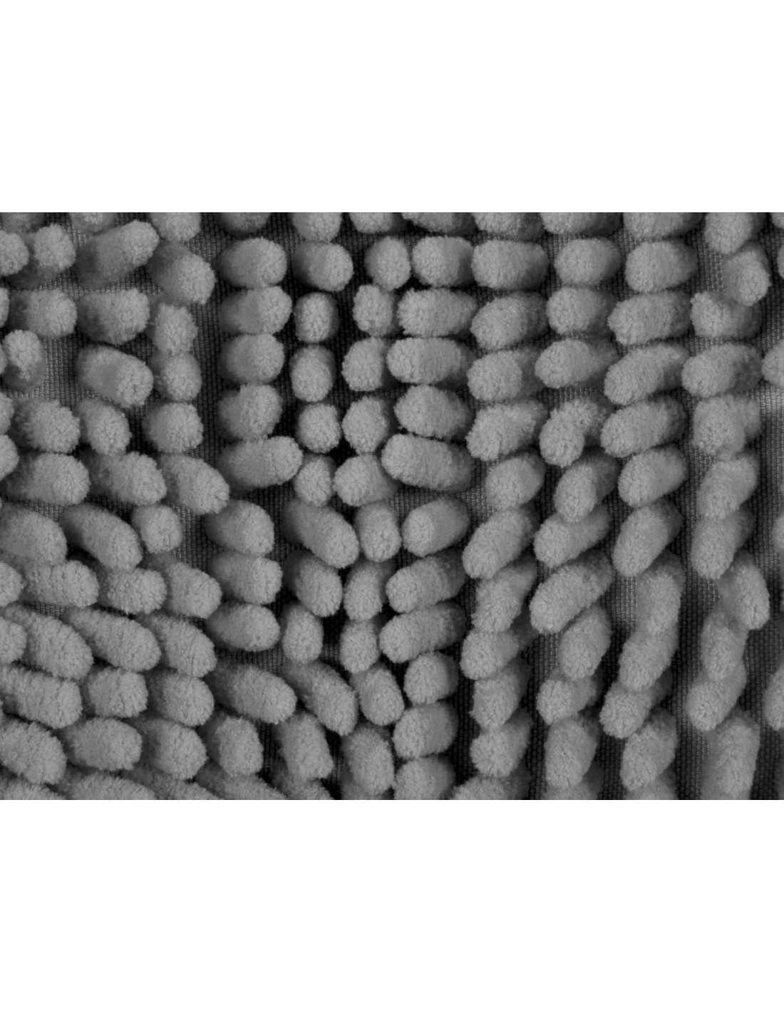 É um tapete tipo chenille, disponível em várias cores para combinar com a decoração da sua casa de banho.