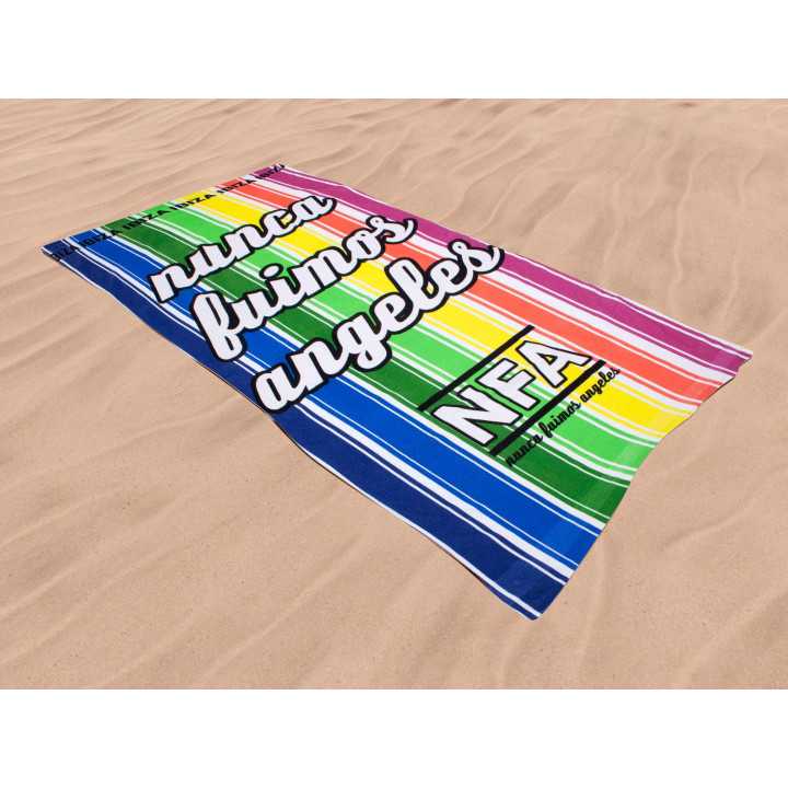 Toalha 100% algodão com um design alegre e colorido, para a praia ou piscina com um toque muito suave.