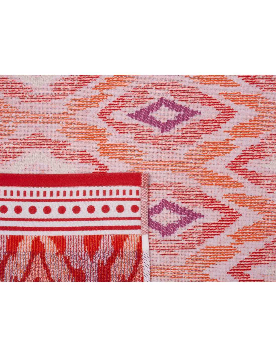 Esta toalha de praia tem um original padrão de diamantes em tons de laranja e uma borda de bolinhas brancas. Um design moderno para estar em dia quando for à praia ou piscina.