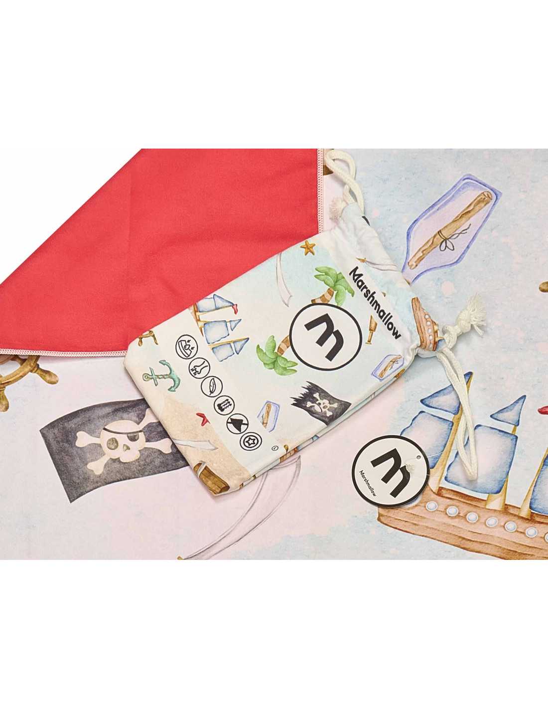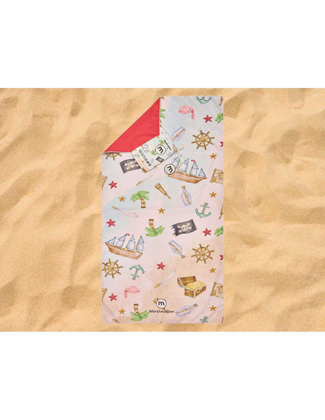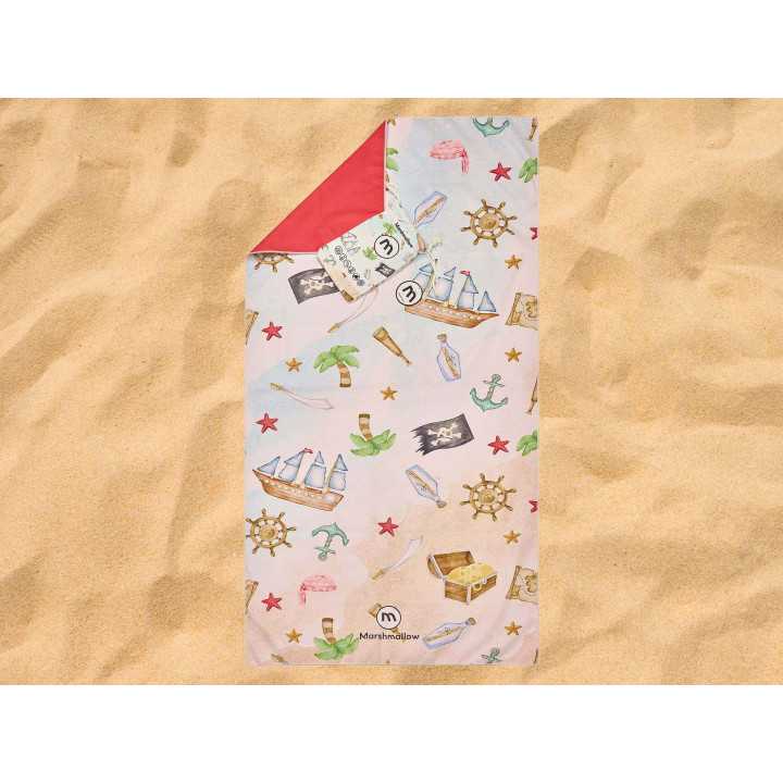 Toalha de praia e piscina infantil em microfibra "Piratas" com um divertido estampado de um filme de piratas. Uma toalha perfeita para os mais pequenos da casa.