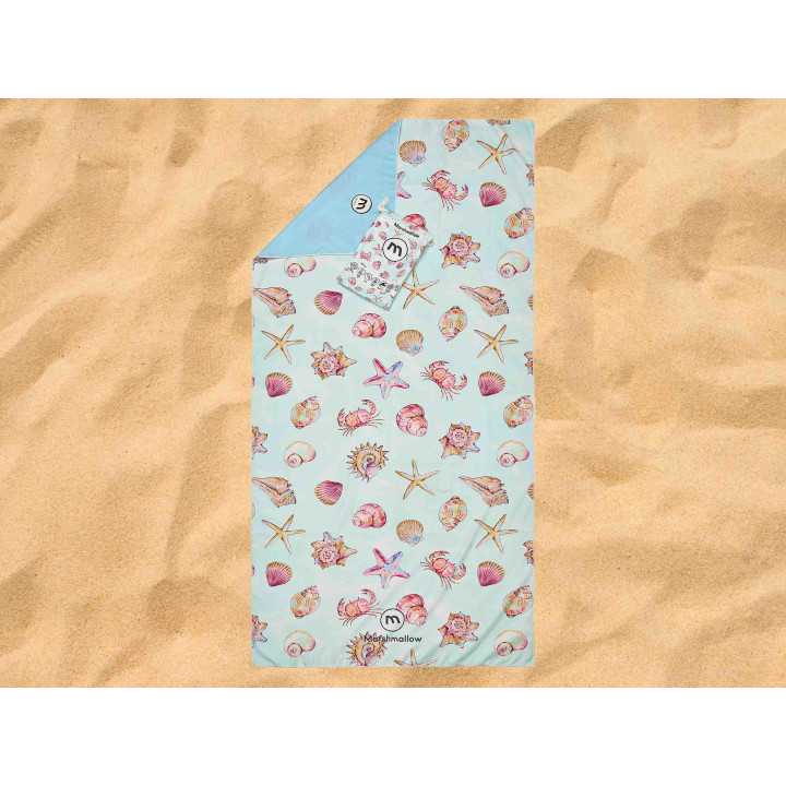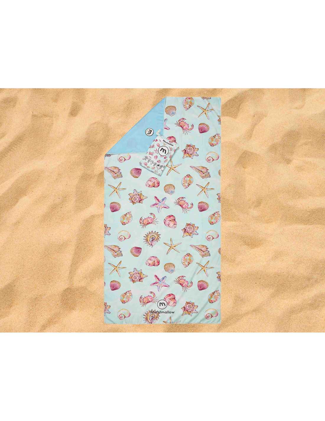 Toalha de praia e piscina grande em microfibra Shells com estampado de caramujos. Uma toalha perfeita para o acompanhar este verão.