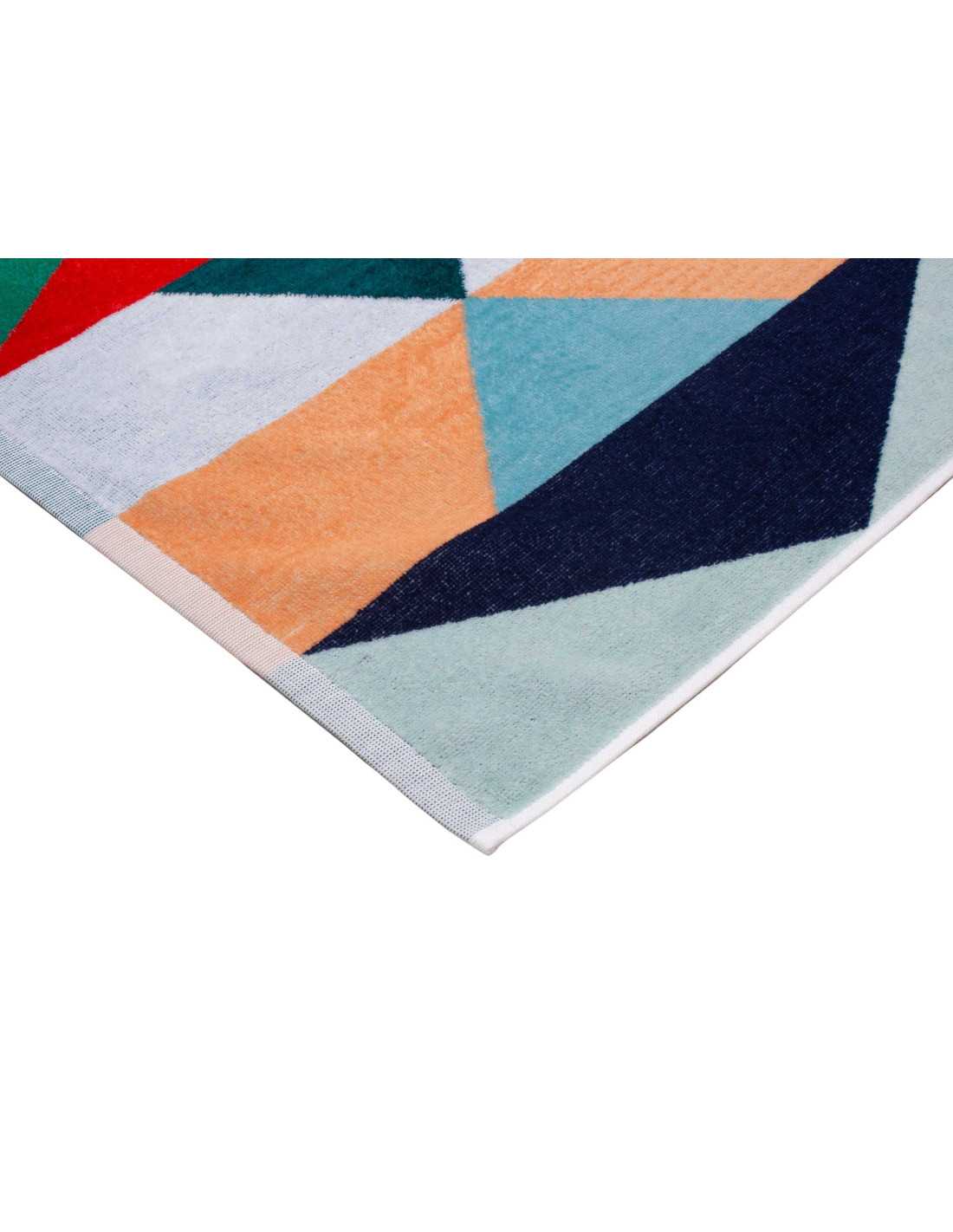 Toalha atual de design original e moderno com triângulos de cores vivas para praia ou piscina com toque aveludado.