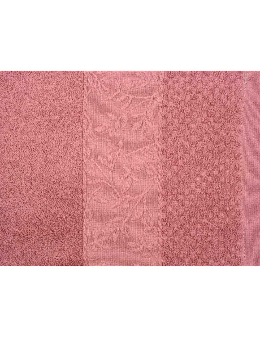 Toalha de banho de 500 g/m2 com bonita borda com bordado natural e cor de rosa, confecionada em algodão turco de alta qualidade.