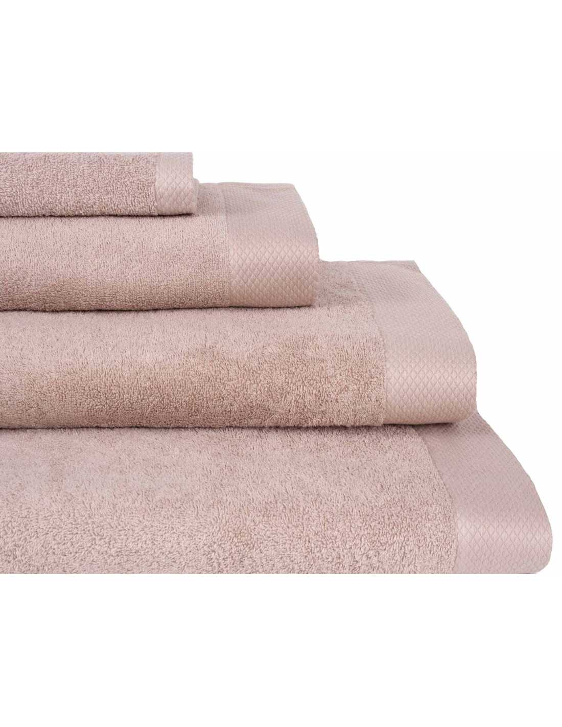 Decore a sua casa de banho com muito estilo e elegância com as nossas toalhas Jara lisas, com uma bonita borda de diamante em relevo e disponíveis em 3 cores. Desfrute do seu toque agradável e da forma como secam bem a sua pele.