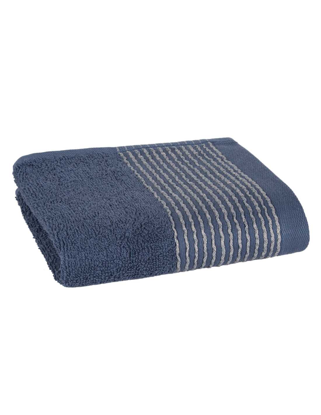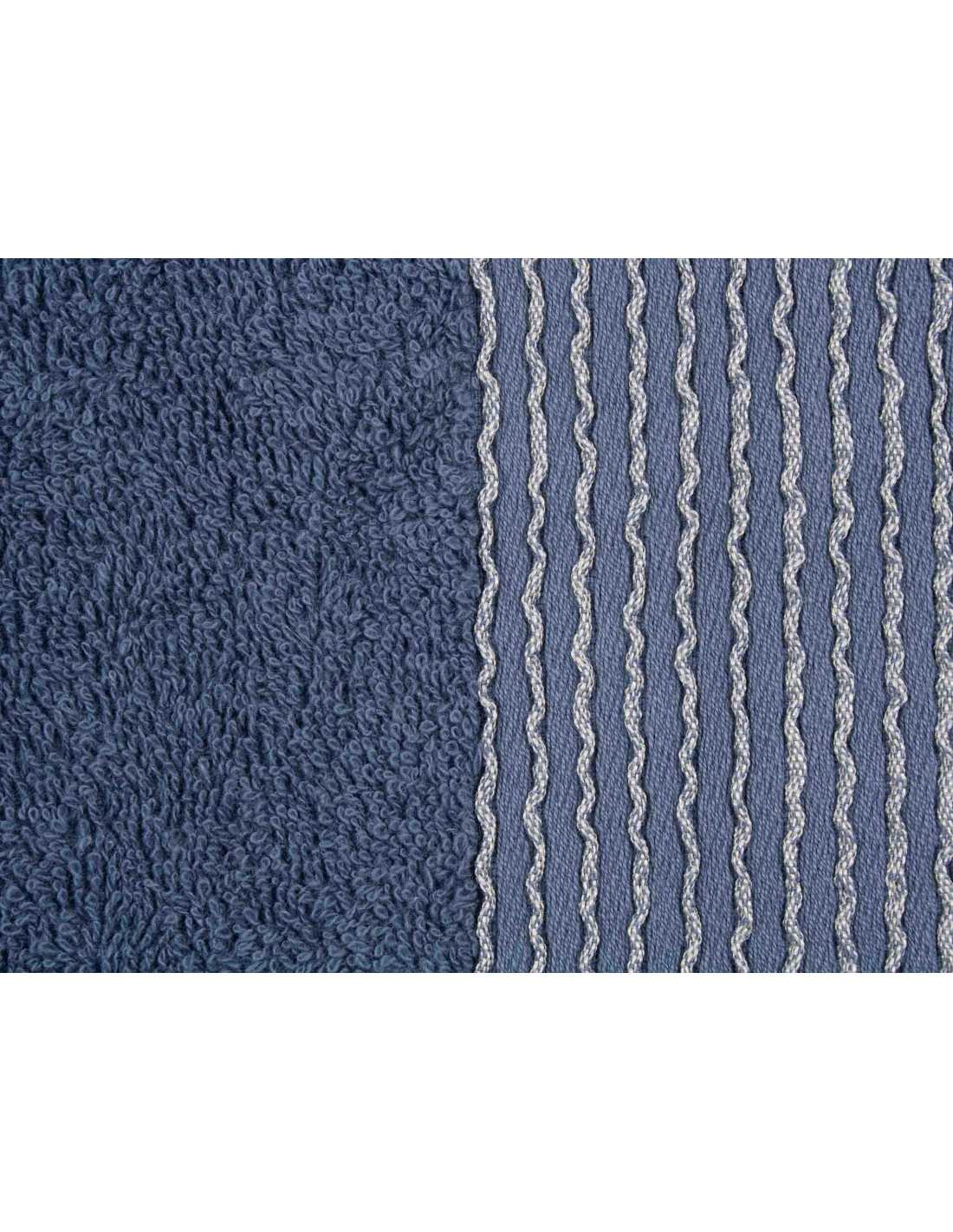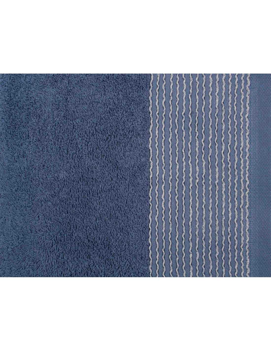 Toalha de felpo de 500 g/m² com uma bonita barra decorativa com linhas onduladas na cor azul, confeccionada em felpo de algodão de grande qualidade. O melhor para a casa de banho!
