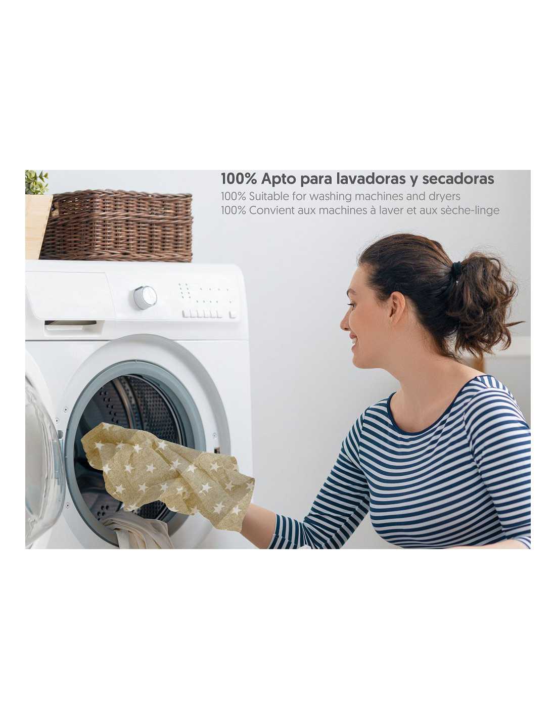 - Lavar a 30º, com amaciante neutro. Não use água sanitária. Ferro em temperatura média. Sem lavagem a seco. Não use o secador.