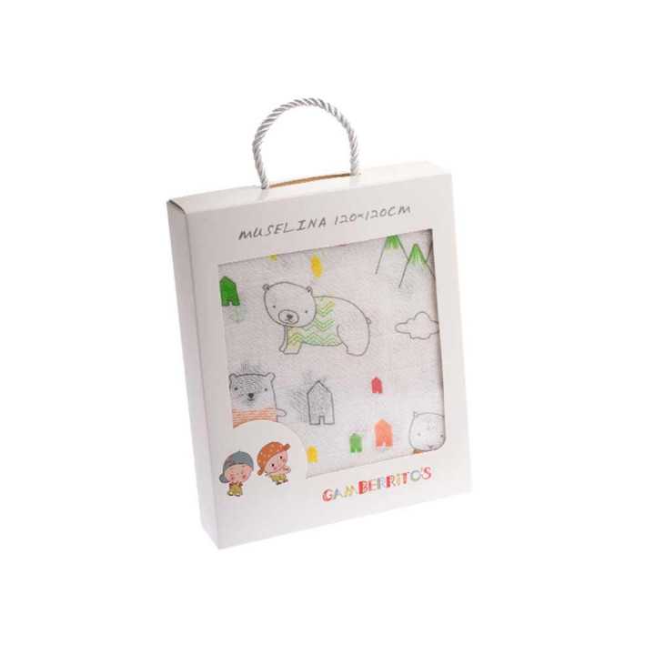A gaze ou musselina é um artigo feito de algodão de primeira qualidade, macio, absorvente e versátil no cuidado do seu bebé. Eles também ficarão mais macios a cada lavagem. Um tecido de gaze fino, respirável e arejado em duas cores diferentes que o ajudará a embrulhar seu bebê, protegê-lo do frio ou em passeios ensolarados, você pode protegê-lo do sol como capa no carrinho ou até mesmo para limpá-lo quando ele se suja ao comer... A gaze é um dos itens que não pode faltar na cestinha do bebê.