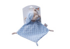 La palabra “doudou” proviene del francés y tiene un significado afectuoso, algo así como “cariño”. Se trata de un peluche cuyo cuerpo tiene forma cuadrada, es como una pequeña manta de terciopelo y en él sobresale la cabeza. Hay algunos que tienen nudos en las esquinas del cuerpo y otros sin embargo son lisos, depende del modelo, hay multitud de ellos.