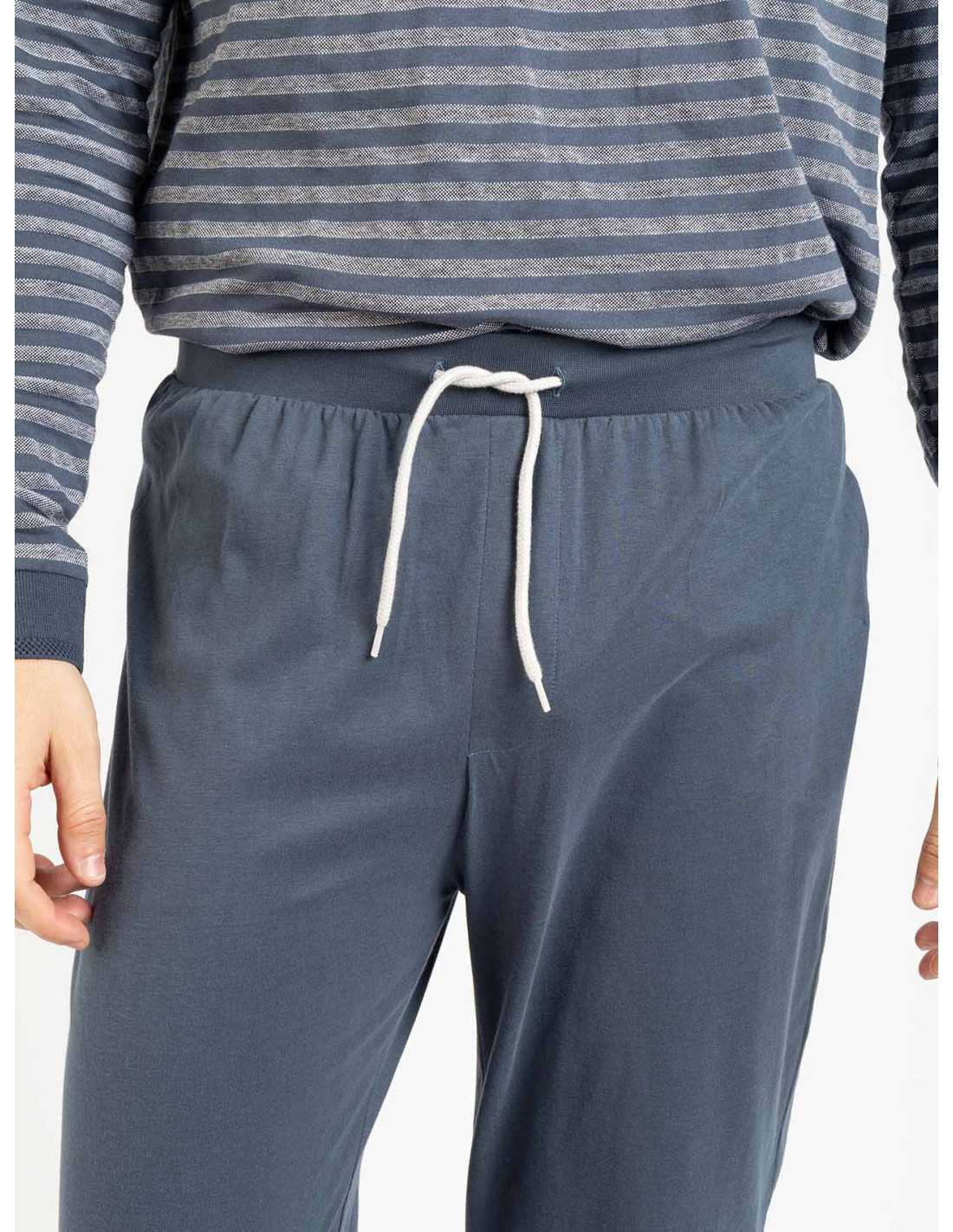 O pijama Ivar é feito em jersey de algodão muito macio, a parte de cima com riscas cinzentas e gola redonda, as calças são cinzentas lisas com punhos, elástico e cordão na cintura. Desfrute dos seus momentos de lazer e relaxamento em casa com o nosso pijama.