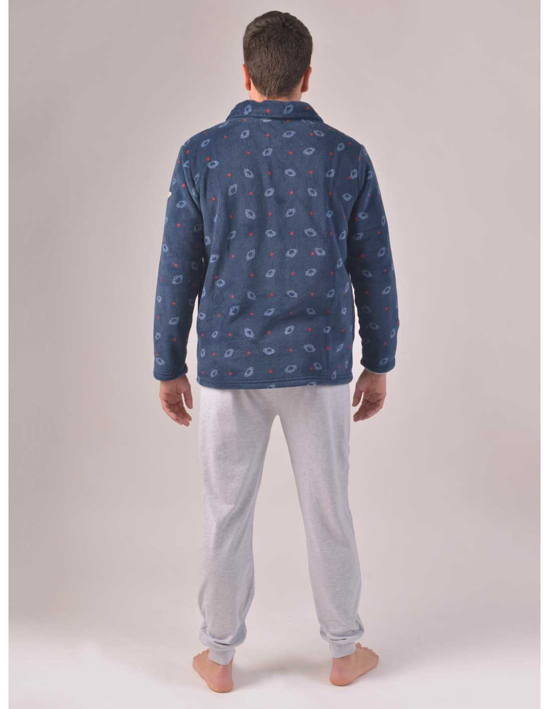 Roupão masculina de coralina, por isso é muito quente e sedosa ao toque. Um elegante robe azul marinho com bolsos e zíper e com estampa de planetas. Não perca a oportunidade de desfrutar de momentos relaxantes em casa com nossos robes e pijamas.