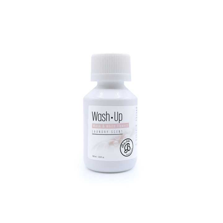 Musk & White Flowers da "Wash Up" é um perfume concentrado da Boles d'olor para lavar roupa na máquina de lavar roupa. Quando concentrado, apenas algumas gotas exalam um perfume para a sua roupa e lençóis durante aproximadamente 12 semanas.