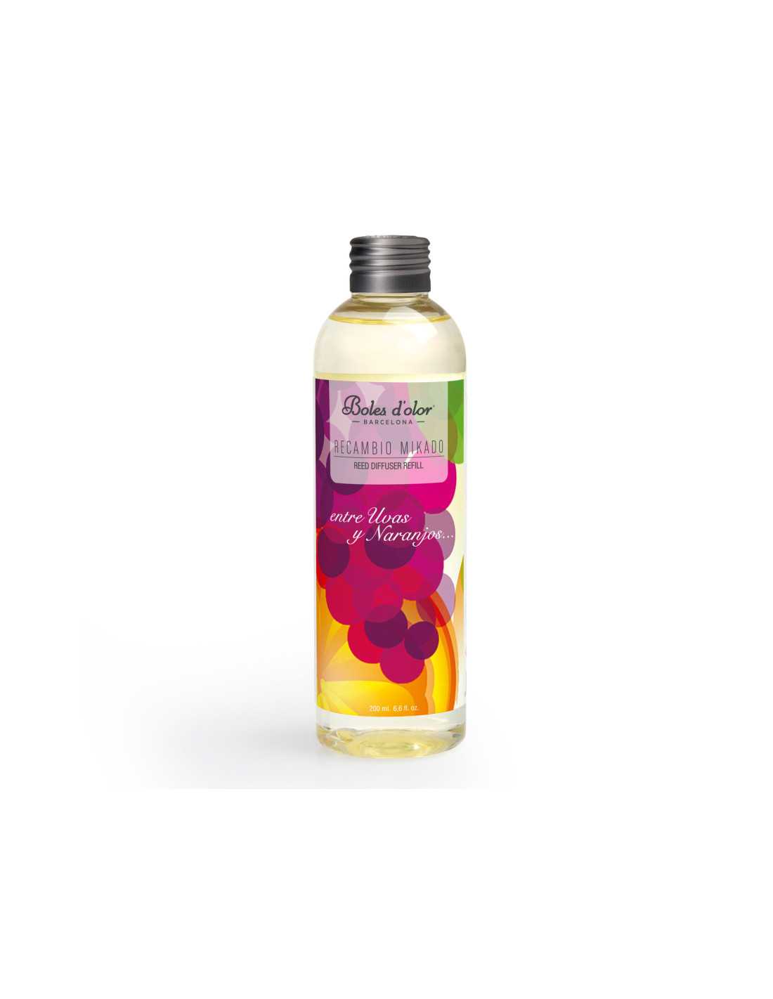 Recarga para o mikado Ambients com fragrância Uvas e Laranjeiras. O Mikado refill cria um aroma contínuo em todo o ambiente durante várias semanas.