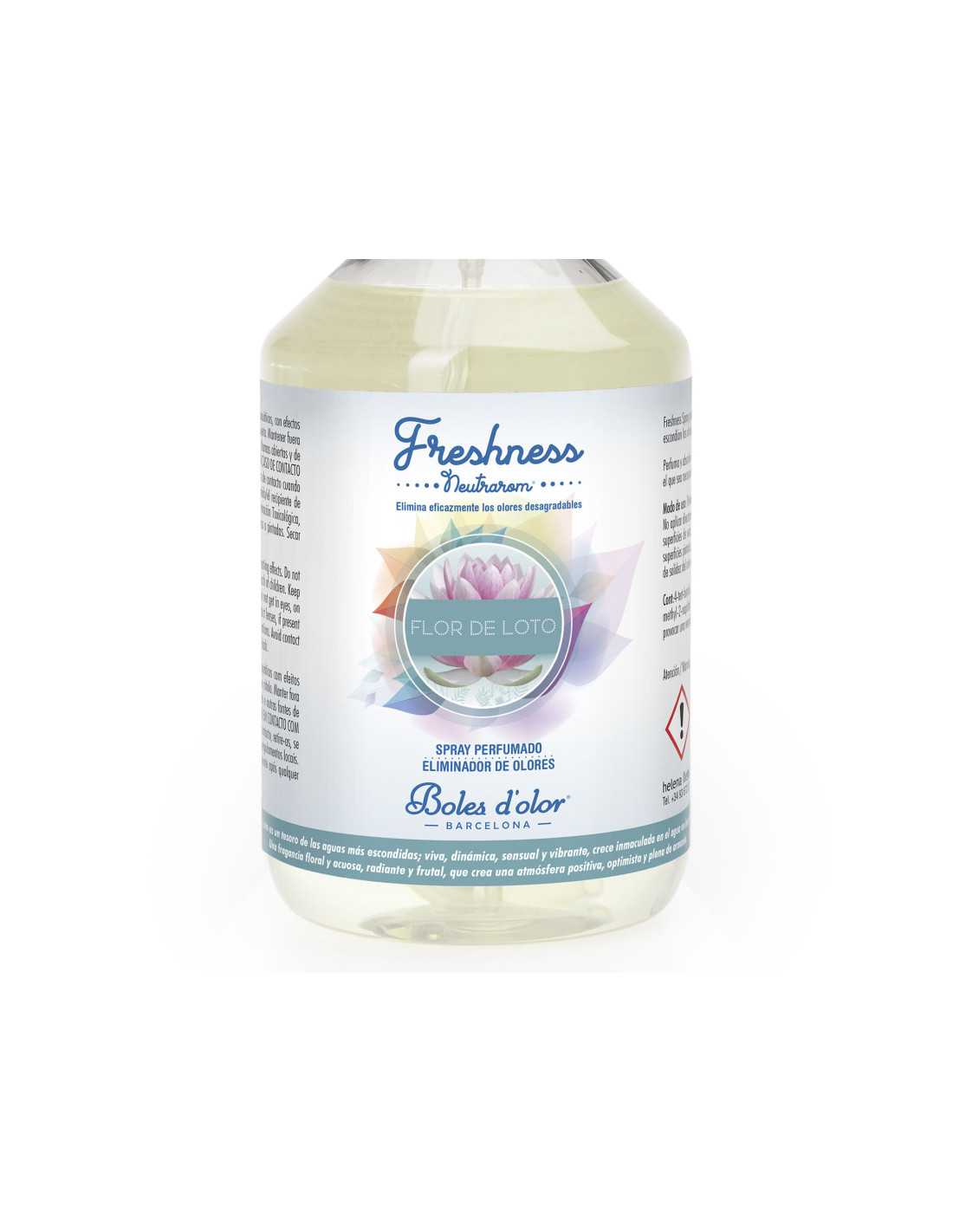 O spray Freshness da Flor lótus, da série Neutrarom da Boles d'olor, absorve as moléculas que provocam os maus odores, substituindo-as por uma fragrância agradável.