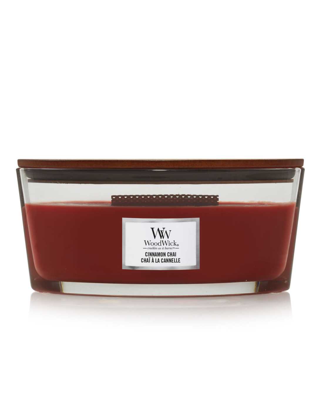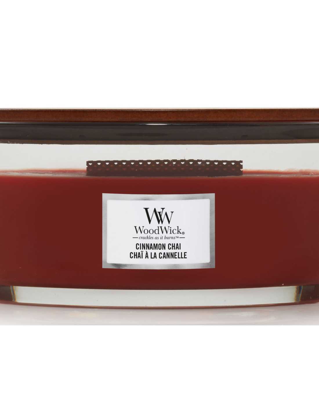 Vela aromática da marca Woodwick, formato Core ellipse, com a fragrância Cinnamon Chai. As velas Woodwick® complementam a tua casa com um suave crepitar e aromas acolhedores.