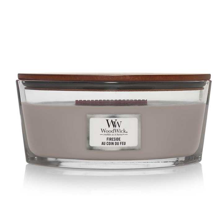 Vela aromática da marca Woodwick, formato Core ellipse, com a fragrância Fireside. As velas Woodwick® complementam a tua casa com um suave crepitar e aromas acolhedores.