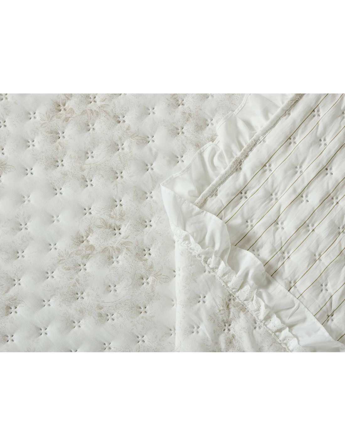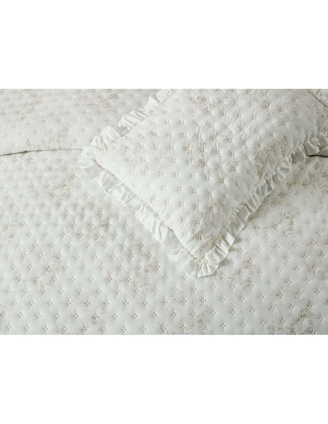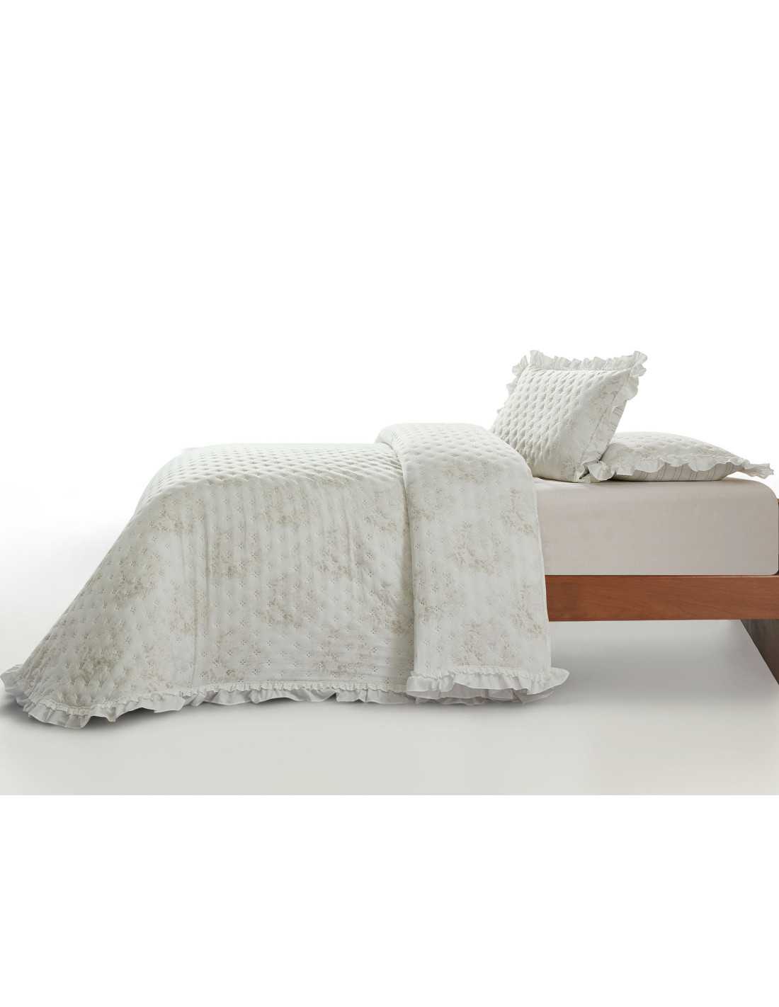 A bouti Andrea bege é uma colcha na cor bege com delicado estampado toile de jouy monocromático e refinado acabamento com duplo folho. Tem um enchimento leve de 120 gramas. Está especialmente indicada para a meia-estação e o verão.