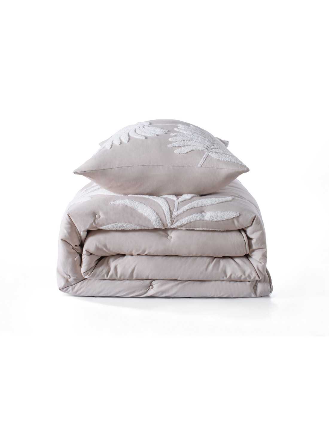 A bouti Brindisi é uma colcha na cor bege com um delicado bordado em relevo com design de ramos. Tem um enchimento leve de 120 gramas. Está especialmente indicada para a meia-estação e o verão.