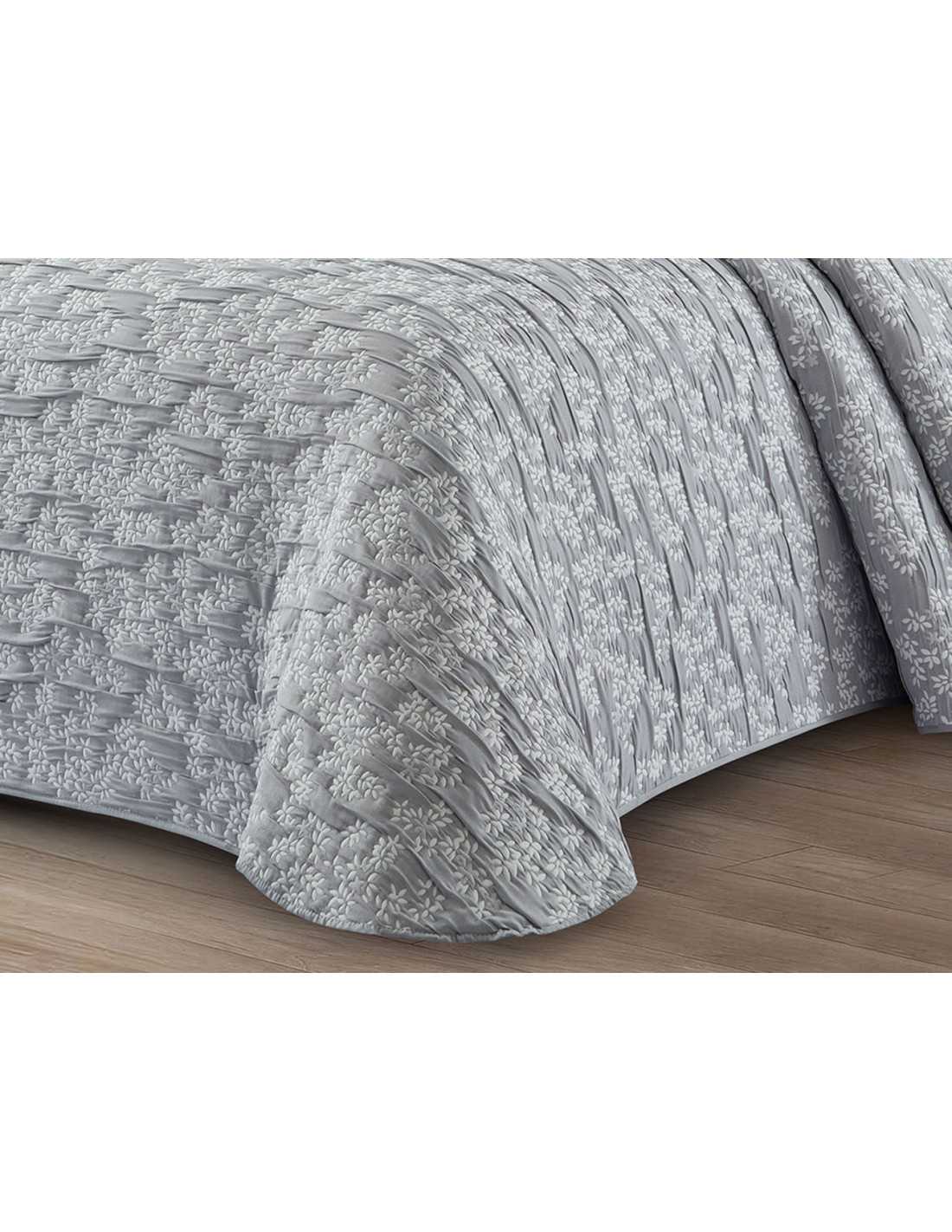 Colcha leve e almofadada para a primavera e verão. Apresenta um bonito design de pequenas folhas em relevo, perfeito para uma mudança de estilo nesta primavera.